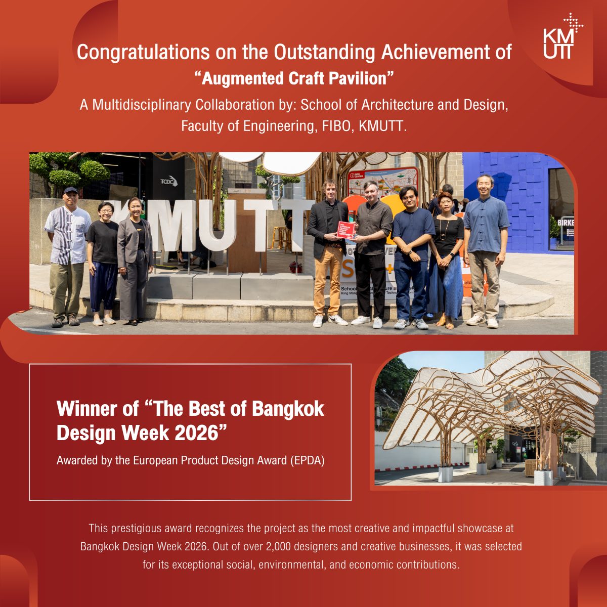 KMUTT’s ‘Augmented Craft Pavilion’ wins “The Best of Bangkok Design Week 2026” Award from EPDA