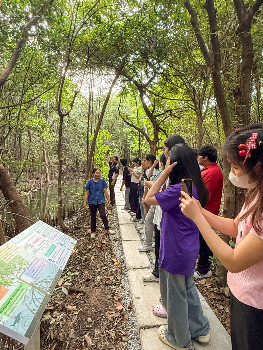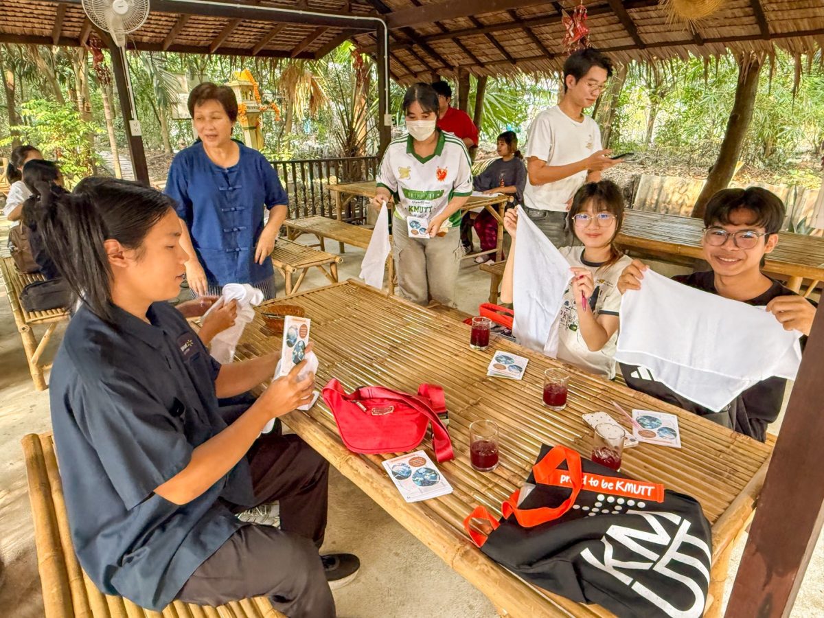 เมื่อวันที่ 26 มกราคม 2569 สำนักหอสมุด มหาวิทยาลัยเทคโนโลยีพระจอมเกล้าธนบุรี จัดกิจกรรมภายใต้ โครงการวัฒนธรรมสร้างสรรค์เพื่อความยั่งยืน พานักศึกษาจำนวน 20 คน เข้าร่วมกิจกรรมเรียนรู้และลงมือทำผ้ามัดย้อมจากสีธรรมชาติ ณ เมืองสวนป่าเกดน้อมเกล้า อำเภอพระประแดง ตำบลทรงคนอง จังหวัดสมุทรปราการ เพื่อส่งเสริมการเรียนรู้ภูมิปัญญาท้องถิ่นควบคู่กับแนวคิดการอนุรักษ์สิ่งแวดล้อม