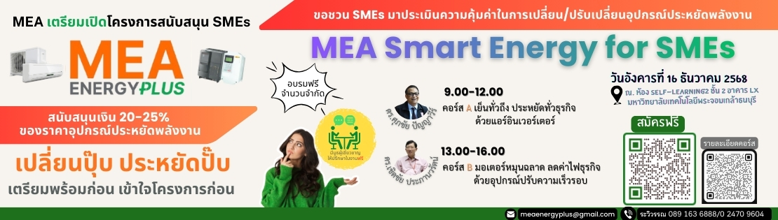 ðŸ’Ą â€œMEA Smart Energy for SMEs: āđ€āļžāļīāđˆāļĄāļ›āļĢāļ°āļŠāļīāļ—āļ˜āļīāļ āļēāļž āļĨāļ”āļ•āđ‰āļ™āļ—āļļāļ™āļ”āđ‰āļ§āļĒāđ€āļ—āļ„āđ‚āļ™āđ‚āļĨāļĒāļĩāļ›āļĢāļ°āļŦāļĒāļąāļ”āļžāļĨāļąāļ‡āļ‡āļēāļ™â€