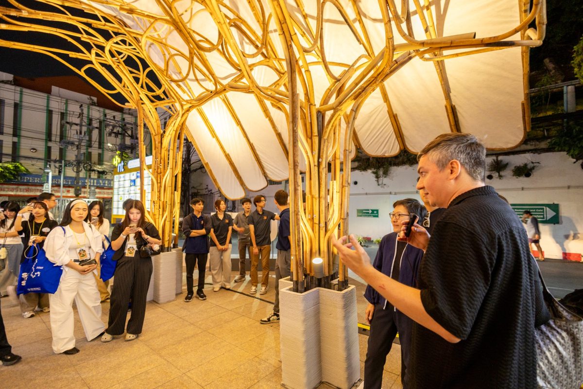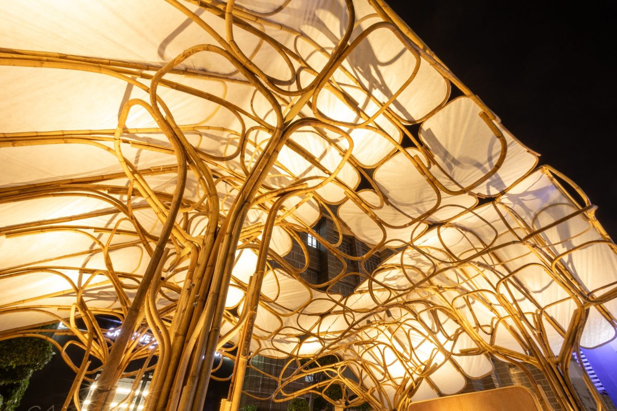 Augmented Craft Pavilion นวัตกรรมศาลาโครงสร้างหวายดัด (Steam-bent Rattan) ที่ก้าวข้ามขีดจำกัดของงานสถาปัตยกรรม ผลงานการสร้างสรรค์ของ Studio Igor Pantic Ltd. ร่วมกับคณะสถาปัตยกรรมศาสตร์และการออกแบบ (SoA+D) คณะวิศวกรรมศาสตร์ (FoE) และสถาบันวิทยาการหุ่นยนต์ภาคสนาม (FIBO) มหาวิทยาลัยเทคโนโลยีพระจอมเกล้าธนบุรี (มจธ.)