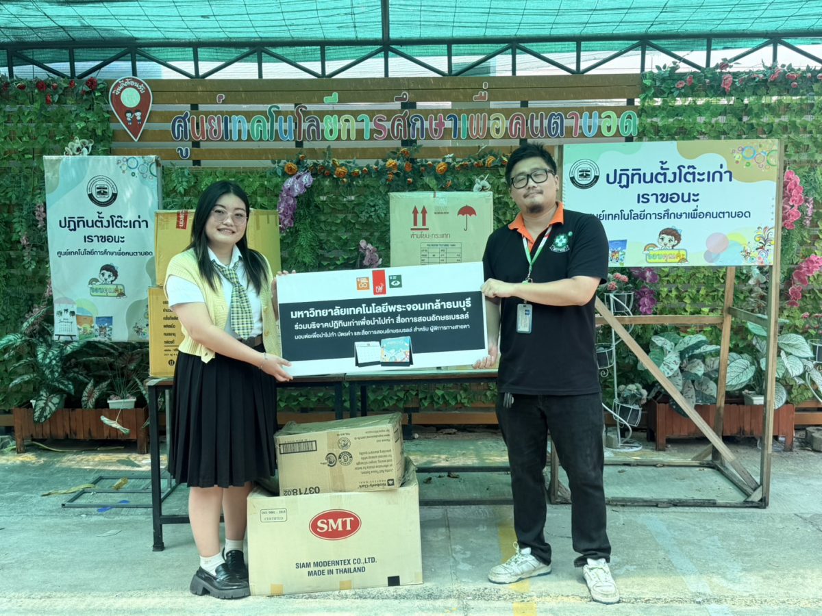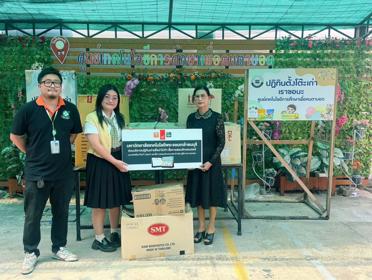 มหาวิทยาลัยเทคโนโลยีพระจอมเกล้าธนบุรี (มจธ.) ส่งมอบปฏิทินตั้งโต๊ะที่ใช้แล้ว ซึ่งรวบรวมจากคณะอาจารย์ บุคลากรและนักศึกษาภายในมหาวิทยาลัย น้ำหนักรวมทั้งสิ้น 204.2 กิโลกรัม ให้แก่ ศูนย์เทคโนโลยีการศึกษาเพื่อคนตาบอด (มูลนิธิช่วยคนตาบอดแห่งประเทศไทย ในพระบรมราชินูปถัมภ์) เพื่อนำไปใช้เป็นวัสดุสำคัญในการจัดทำหนังสืออักษรเบรลล์สำหรับผู้พิการทางสายตา กิจกรรมการรวบรวมและส่งมอบปฏิทินเก่าในครั้งนี้ ไม่เพียงแต่เป็นการแบ่งปันเพื่อสังคม แต่ยังเป็นการบริหารจัดการทรัพยากรอย่างคุ้มค่าตามหลักเศรษฐกิจหมุนเวียน (Circular Economy) โดยการเปลี่ยนของเหลือทิ้งให้กลับมามีคุณค่าและเกิดประโยชน์สูงสุด ซึ่งการดำเนินงานดังกล่าวสอดคล้องกับเป้าหมายการพัฒนาที่ยั่งยืนใน เป้าหมายที่ 4 การศึกษาที่เท่าเทียม เป้าหมายที่ 10 ลดความเหลื่อมล้ำ เป้าหมายที่ 12 การผลิตและการบริโภคที่ยั่งยืน และเป้าหมายที่ 17 ความร่วมมือเพื่อการพัฒนาที่ยั่งยืน โครงการนี้แสดงถึงความร่วมมืออันดีระหว่างสถาบันการศึกษา (มจธ.) และศูนย์เทคโนโลยีการศึกษาเพื่อคนตาบอด (มูลนิธิช่วยคนตาบอดแห่งประเทศไทย ในพระบรมราชินูปถัมภ์)ในการร่วมกันขับเคลื่อนสังคมและสิ่งแวดล้อมไปสู่ความยั่งยืน