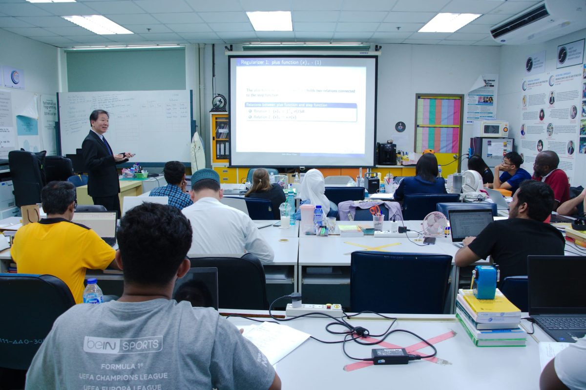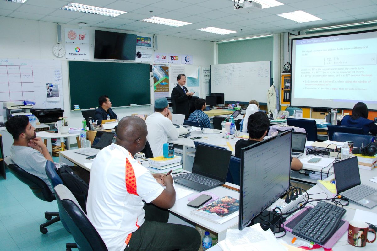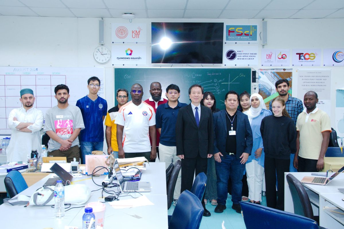 เมื่อวันที่ 28 ตุลาคม 2568 ห้องปฏิบัติการ Fixed Point Laboratory คณะวิทยาศาสตร์ มจธ. ได้จัดบรรยายเชิงวิชาการ Workshop and Postdocs Series ภายใต้กิจกรรม TaCS Mathematics Seminar Series No.19 ในหัวข้อ “Smoothing Functions for Sparse Optimization: A Unified Framework” โดย Prof. Dr. Jein-Shan Chen คณบดีคณะวิทยาศาสตร์ National Taiwan Normal University ได้ถ่ายทอดแนวคิดเชิงคณิตศาสตร์ที่สำคัญในการสร้าง ฟังก์ชันทำให้เรียบ (Smoothing Functions) สำหรับ ปัญหาการหาค่าที่เหมาะสมแบบ Sparse Optimization เพื่อเชื่อมโยงระหว่างตัวกำหนดปกติ (Regularizers) ที่ไม่เรียบ เช่น ℓ₀-norm, MCP, SCAD และ ℓₚ-norm ให้สามารถนำไปใช้ในอัลกอริทึมเชิงตัวเลขได้อย่างมีประสิทธิภาพ
