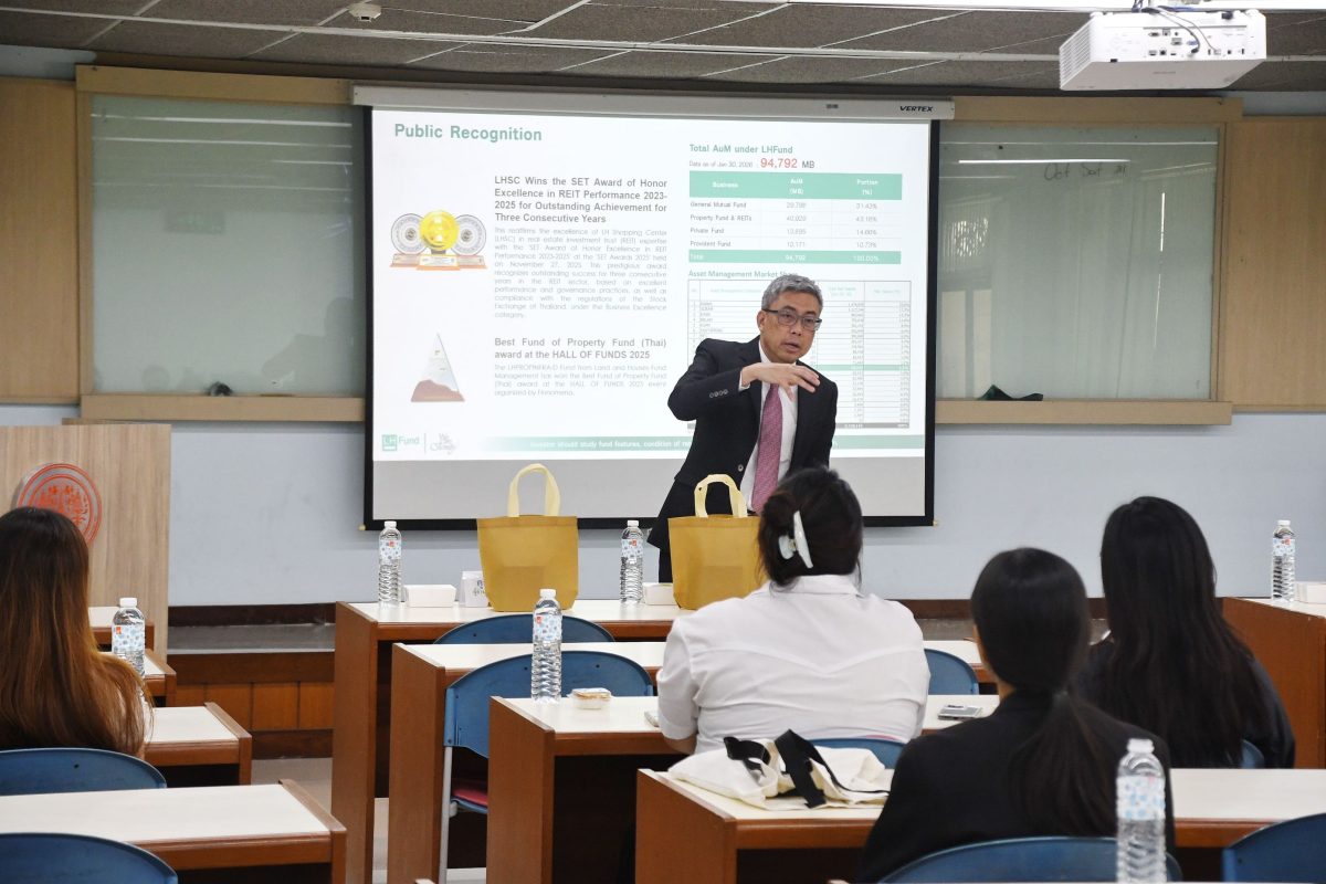 การบรรยายพิเศษครั้งนี้ได้รับเกียรติจาก คุณมนรัฐ ผดุงสิทธิ์ กรรมการผู้อำนวยการ และ คุณณัฐพล คำวงษา ผู้อำนวยการอาวุโส ฝ่ายกลยุทธ์ผลิตภัณฑ์ จาก LH Fund ได้ให้ข้อมูลเจาะลึกเกี่ยวกับทิศทางของอุตสาหกรรมการจัดการกองทุนในอนาคต รวมถึงทักษะที่จำเป็นสำหรับนักศึกษาสายวิทยาศาสตร์ที่ต้องการก้าวเข้าสู่โลกการเงิน และได้รับโอกาสเข้าร่วมงาน การแนะนำตำแหน่งงาน และโครงการฝึกงานที่เปิดรับนักศึกษาที่มีศักยภาพ เพื่อเตรียมความพร้อมสู่การทำงานจริงในองค์กรชั้นนำ และนักศึกษาได้ร่วมซักถาม แลกเปลี่ยนมุมมองกับผู้เชี่ยวชาญโดยตรง เพื่อวางแผนเส้นทางอาชีพในสายงานวิเคราะห์หลักทรัพย์ และบริหารจัดการกองทุน