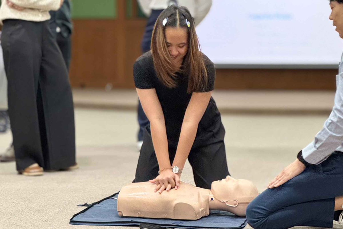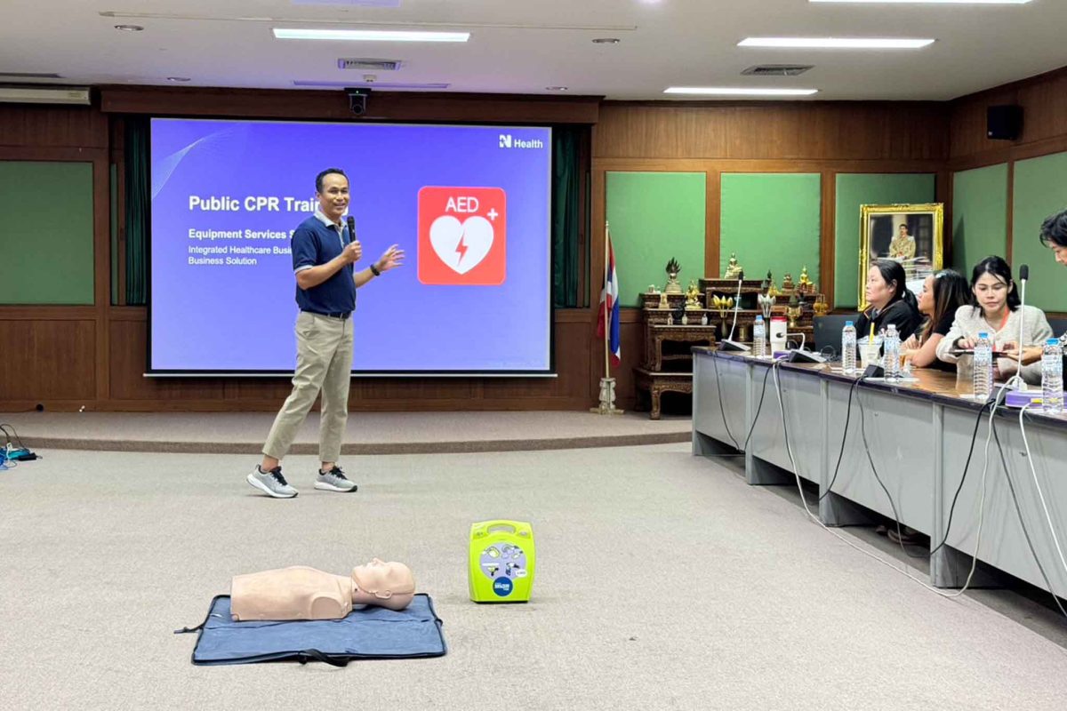 วันที่ 28 พฤศจิกายน 2568 คณะครุศาสตร์อุตสาหกรรมและเทคโนโลยี มจธ. จัดอบรมการปฐมพยาบาลและการใช้เครื่องกระตุกหัวใจไฟฟ้าอัตโนมัติ (AED) ณ หอเกียรติยศ ชั้น 8 อาคาร S13 นำโดย รศ. ดร.คมกฤตย์ ชมสุวรรณ รองคณบดีฝ่ายวิชาการและระบบการศึกษา ให้เกียรติเป็นประธานเปิดการอบรมดังกล่าวฯ พร้อมด้วยนักศึกษาและบุคลากรที่เข้าร่วมอบรมจำนวนกว่า 30 คน ภายในกิจกรรมประกอบด้วยการบรรยายให้ความรู้เกี่ยวกับการช่วยชีวิตขั้นพื้นฐาน (Basic Life Support: BLS) จากทางบริษัท เนชั่นแนล เฮลท์แคร์ ซิสเท็มส์ จำกัด, การสาธิตการทำ CPR การฝึกปฏิบัติจริง รวมถึงการใช้เครื่อง AED อย่างถูกต้องและปลอดภัย โดยผู้เข้าร่วมได้รับการฝึกแบบลงมือปฏิบัติเต็มรูปแบบ และท้ายกิจกรรมมีการมอบประกาศนียบัตรให้แก่ผู้เข้ารับการอบรมทุกคน เพื่อรับรองความพร้อมและความสามารถในการให้ความช่วยเหลือเหตุฉุกเฉินขั้นต้นภายในหน่วยงาน