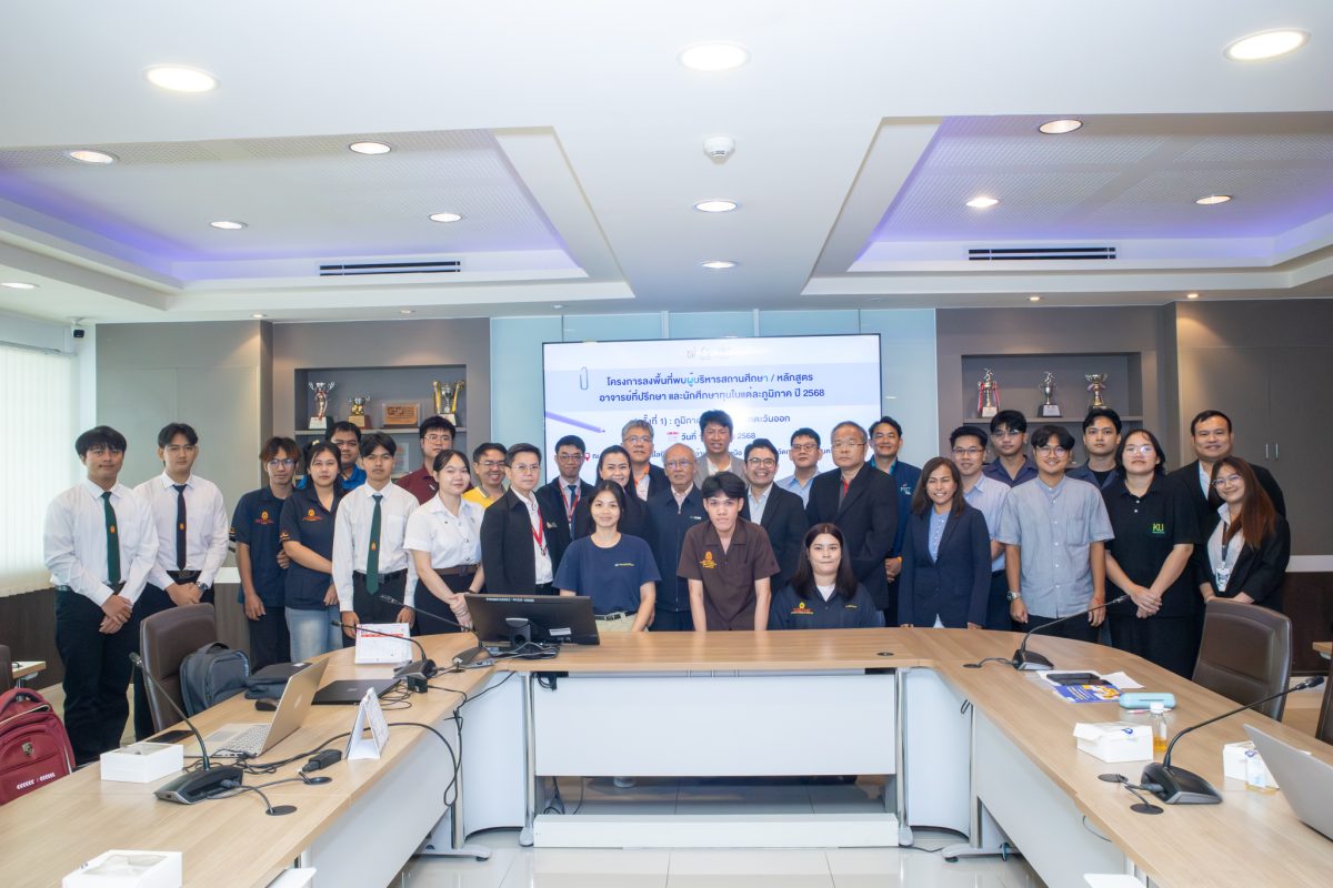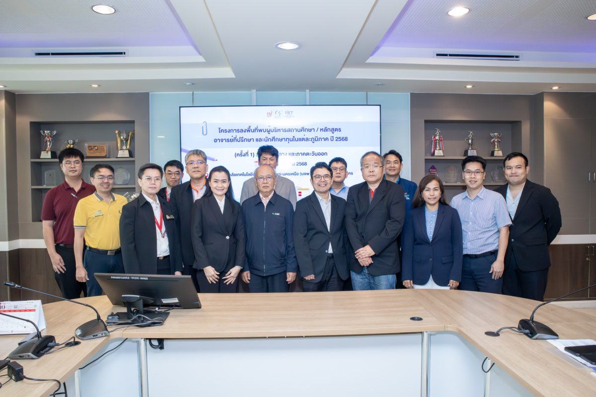 เมื่อวันที่ 16 ตุลาคม 2568 คณะครุศาสตร์อุตสาหกรรมและเทคโนโลยี มจธ. จัดโครงกรอบการหนุนเสริมนักศึกษาทุนโครงการทุนพระกนิษฐาสัมมาชีพ ผ่านความร่วมมือมหาวิทยาลัย ปี 2568 กิจกรรมการลงพื้นที่พบผู้บริหารสถานศึกษา/หลักสูตร อาจารย์ที่ปรึกษา และนักศึกษาทุนในแต่ละภูมิภาค ครั้งที่ 1 : ภาคกลางและภาคตะวันออก ณ ห้องประชุม 208 (ชั้น 2) คณะครุศาสตร์อุตสาหกรรม มหาวิทยาลัยเทคโนโลยีพระจอมเกล้าพระนครเหนือ โดยมี รศ.ดร.สมศักดิ์ อรรคทิมากูล คณบดีคณะครุศาสตร์อุตสาหกรรม มหาวิทยาลัยเทคโนโลยีพระจอมเกล้าพระนครเหนือ (มจพ.) ให้การต้อนรับคณะผู้บริหาร ได้แก่ รศ.ดร.ธเนศ ธนิตย์ธีรพันธ์ คณบดีคณะอุตสาหกรรมและเทคโนโลยี (หัวหน้าโครงการฯ) พร้อมด้วย อาจารย์อินทร์ธิรา คำภีระ (เลขานุการโครงการฯ) ผศ.ปานเพชร ชินินทร (อนุกรรมการส่งเสริมและพัฒนาการศึกษาระดับสูงกว่าภาคบังคับ) คณะทำงาน นักเรียนทุน และอาจารย์ที่ปรึกษาทุนฯ จำนวนกว่า 40 แห่งจากมหาวิทยาลัยในภาคกลางและภาคตะวันออกในโครงการฯ เข้าร่วมกิจกรรมในครั้งที่ 1 ซึ่งการจัดกิจกรรมครั้งนี้จัดขึ้นเพื่อสร้างความเข้าใจรายละเอียดทุนและเป้าหมายบนความร่วมมือในการร่วมดูแลและพัฒนานักศึกษาทุนร่วมกัน รวมทั้งแลกเปลี่ยนแนวทางในการพัฒนาทักษะทางวิชาการและการวิจัยของนักศึกษาทุน ตลอดจนการวางแผนอนาคตทางการศึกษาตามที่คาดหวัง เพื่อพัฒนาศักยภาพและความสามารถพิเศษ ตลอดจนสานต่อความร่วมมือ และสื่อสารเป้าหมายการพัฒนาและแลกเปลี่ยนแนวทางการหนุนเสริมนักศึกษาทุนให้เกิดประสิทธิภาพและยั่งยืน