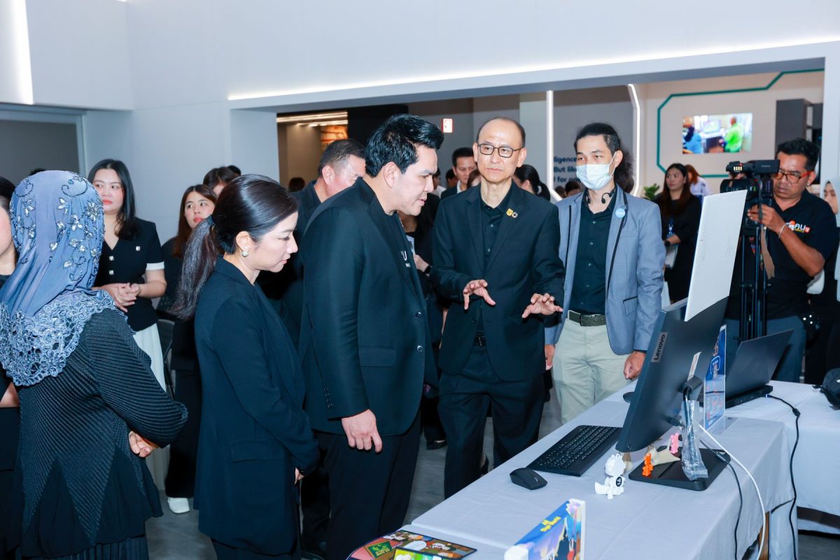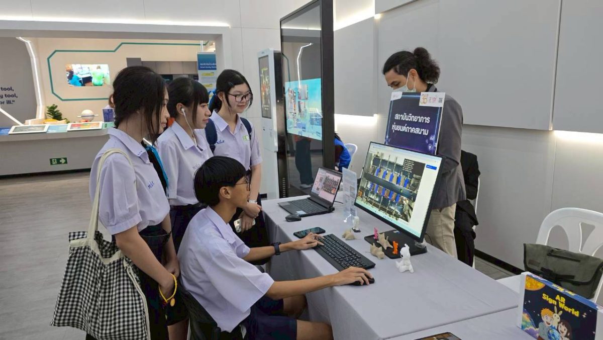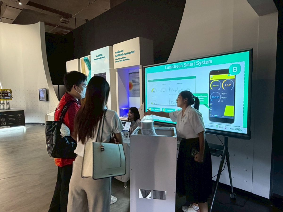 ในการนี้ นายสุรศักดิ์ พันธ์เจริญวรกุล รัฐมนตรีว่าการกระทรวง อว. เป็นประธานเปิดงานและให้เกียรติเยี่ยมชมบูธผลงานนวัตกรรมของ มจธ. พร้อมคณะผู้บริหารระดับสูงของ อพวช. โดยมี รศ.ดร.สยาม เจริญเสียง รองอธิการบดีอาวุโสฝ่ายวิชาการ และ ผศ.ดร.สุธาทิพย์ มณีวงศ์วัฒนา ผู้อำนวยการสำนักหอสมุด มจธ. รวมทั้งคณาจารย์ นักวิจัยและนักศึกษาของคณะต่างๆร่วมนำเสนอผลงานนวัตกรรม เช่น AI for Architecture and Design/ Brain Computer Interface (BCI) to Integrate Individuals with Disabilities into the Workforce/ Bio Packaging 100% และ หนังสือ AR สำหรับเด็กพิการ/ LumiGreen – ระบบท่อแสงอัจฉริยะเพื่ออาคารยั่งยืน/ Digital Aquarium Lab/ ข้อมูลการสแกนวัตถุ 3 มิติด้วยแสงเลเซอร์แบบภาคพื้นดิน และการวิเคราะห์แผ่นดินไหวของเจดีย์วัดมหาธาตุสุโขทัย/ Future Food/ ฟิสิกส์การแพทย์และปัญญาประดิษฐ์: เส้นทางสู่อาชีพแห่งอนาคตด้านเทคโนโลยีสุขภาพและวัสดุทางการแพทย์/ Time Sharing Telepresence System