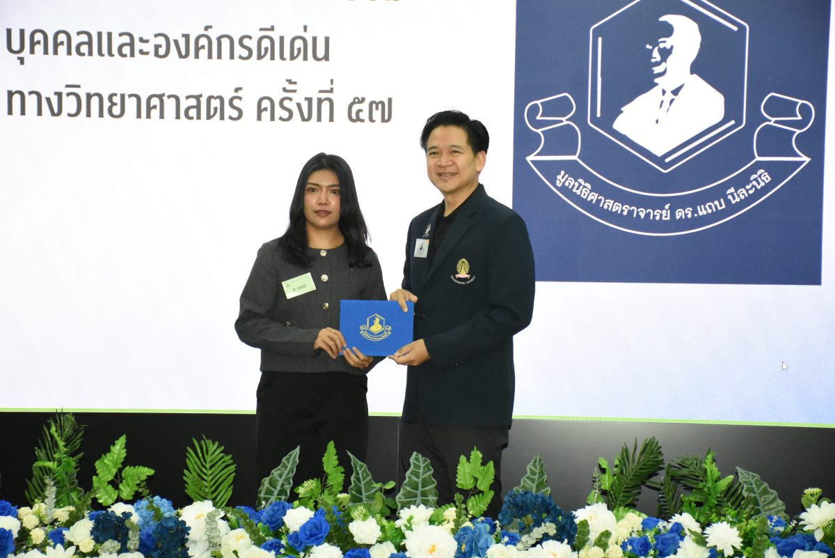 เมื่อวันที่ 14 ธันวาคม 2568 นักศึกษาคณะวิทยาศาสตร์ มหาวิทยาลัยเทคโนโลยีพระจอมเกล้าธนบุรี(มจธ.) จำนวน 19 คน เข้ารับรางวัลการศึกษาทางวิทยาศาสตร์และทุนการศึกษาจากมูลนิธิศาสตราจารย์ ดร.แถบ นีละนิธิ ประจำปี พ.ศ. 2567 ณ คณะวิทยาศาสตร์ จุฬาลงกรณ์มหาวิทยาลัย โดยมี ดร.เปรมปรีดิ์ ดวงภุมเมศ ผศ. ดร. จิตรา เกตุแก้ว ผศ. ดร.ฐิตาภรณ์ กนกรัตน ผศ. ดร.วราภรณ์ จาตนิล ผศ. ดร.กิตติศักดิ์ชัย แนมจันทร์ ผศ. ดร.สุกัญญา พึ่งจะแย้ม และบุคลากรคณะวิทยาศาสตร์ ร่วมแสดงความยินดีกับนักศึกษาที่ได้รับรางวัลเข็มเกียรติยศ และประกาศนียบัตร ทั้ง 3 ประเภท ดังนี้