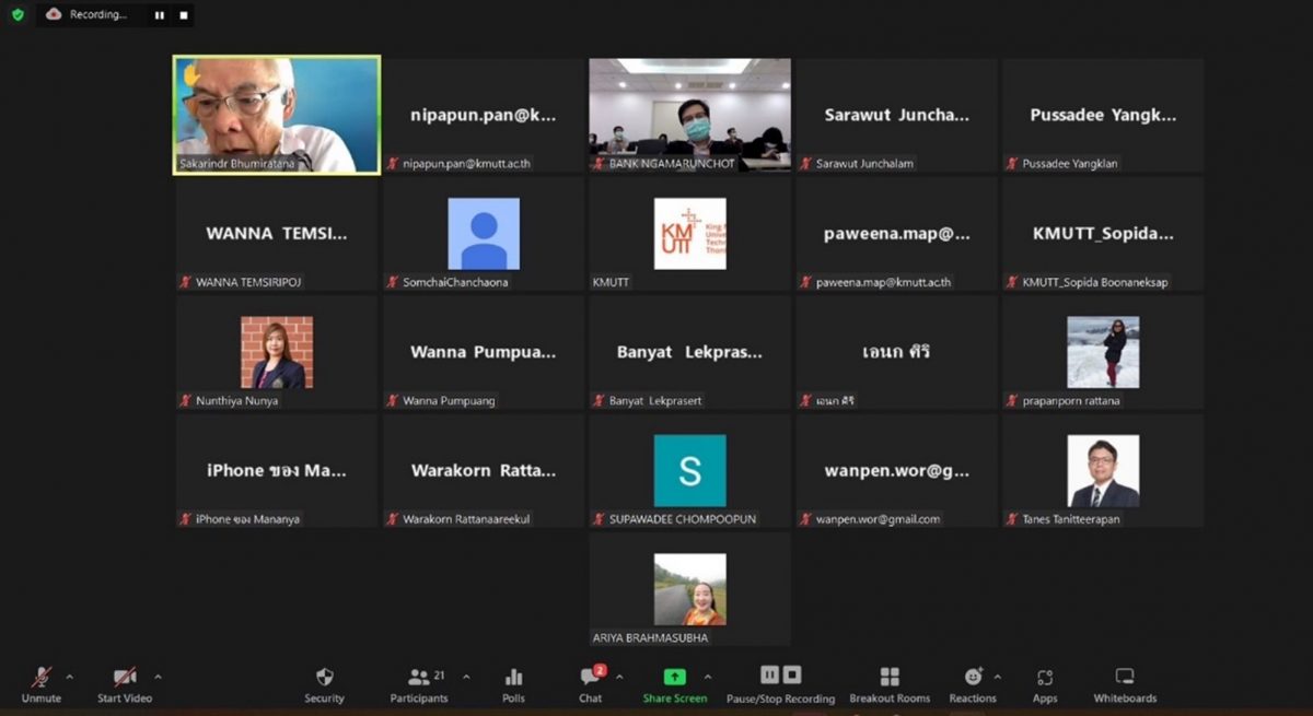 วันที่ 8 ตุลาคม 2565 มหาวิทยาลัยเทคโนโลยีพระจอมเกล้าธนบุรี (มจธ.) จัดประชุมความร่วมมือกับโรงเรียนในจังหวัดราชบุรีและติดตามงาน มจธ. ราชบุรี ครั้งที่ 5/2565 ณ ห้องประชุม ชั้น 4 อาคารหอสมุด มจธ.ราชบุรี และรูปแบบออนไลน์ผ่านระบบ ZOOM Meeting โดยมี รศ. ดร.สุวิทย์ แซ่เตีย อธิการบดี เป็นประธานการประชุม ร่วมกับผู้บริหารมหาวิทยาลัย อาจารย์ เจ้าหน้าที่ มจธ.ราชบุรี และพี่ๆนักศึกษาเก่า มดไฟฟ้า รุ่น 11 โดยมีผู้เข้าร่วมประชุมกว่า 60 คน ในการประชุมดังกล่าวได้มีการรายงานผลการดำเนินงานในภาพรวมของ มจธ.ราชบุรี ได้แก่ ดำเนินงานภาพรวมการจัดการศึกษา มจธ. ราชบุรี ความก้าวหน้าเรื่องหลักสูตรใหม่ งานบริการวิชาการและงานวิจัยด้านการศึกษา “โครงการอบรมให้ความรู้ไฟฟ้าเบื้องต้น” ให้กับนักเรียนระดับชั้น ม.ต้น ในโรงเรียนขยายโอกาสในอำเภอสวนผึ้งและอำเภอบ้านคา จังหวัดราชบุรี งานบริการวิชาการด้านอุตสาหกรรมความก้าวหน้างานด้านอุตสาหกรรม และ BCG