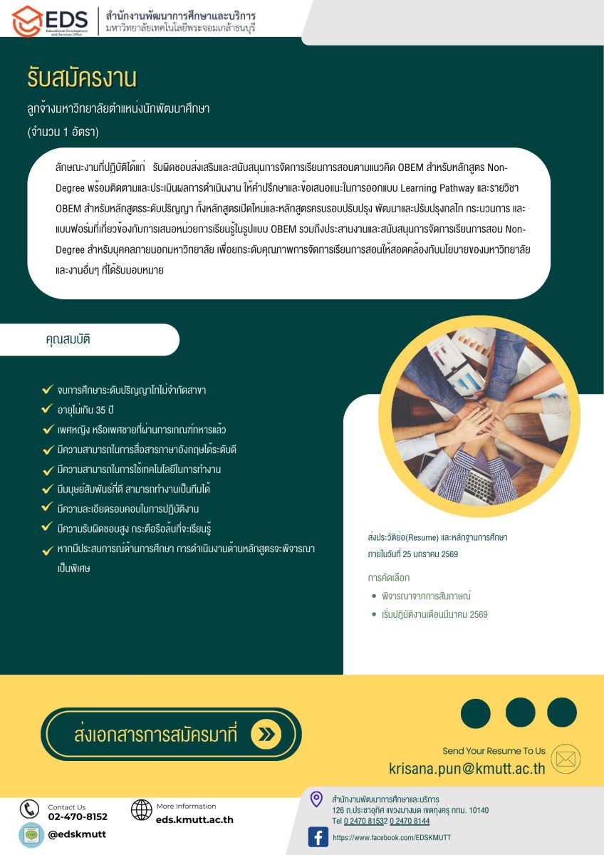 รับสมัคร ลูกจ้างมหาวิทยาลัย ตำแหน่ง นักพัฒนาการศึกษา