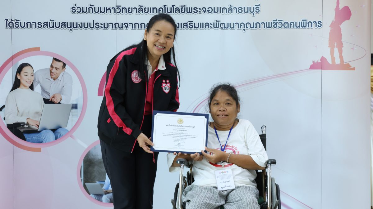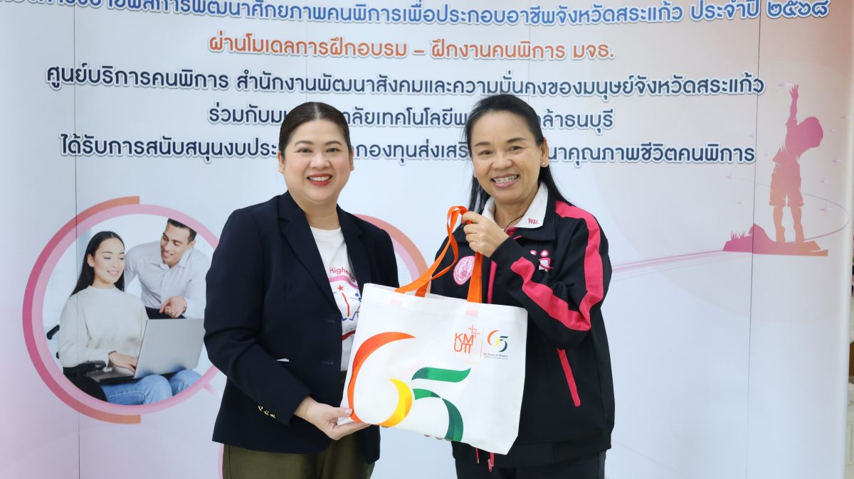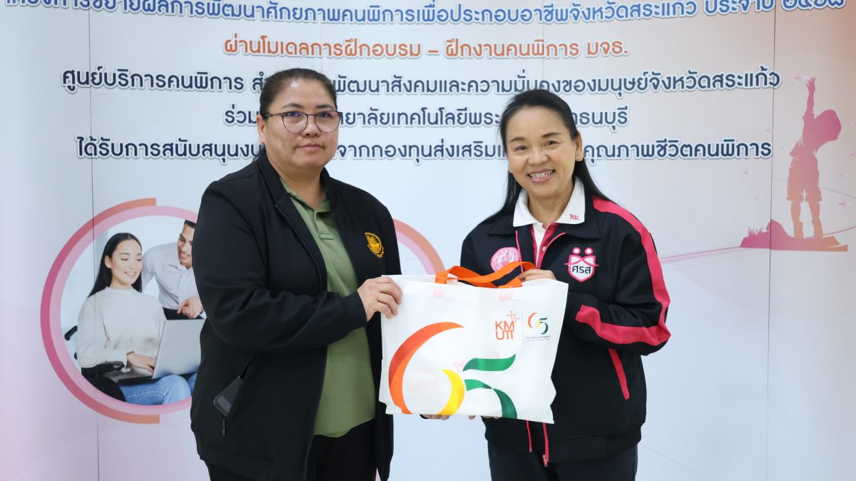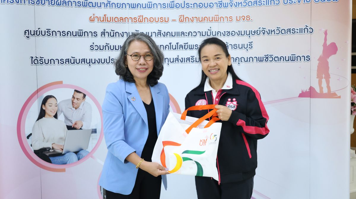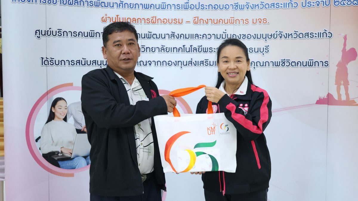 พิธีปิด “โครงการขยายผลการพัฒนาศักยภาพคนพิการเพื่อการประกอบอาชีพจังหวัดสระแก้ว ประจำปี 2568″ ระยะ 2 ผ่านโมเดลการฝึกอบรม – ฝึกงาน คนพิการ มจธ.” ในหลักสูตรเจ้าหน้าที่ประจำสำนักงาน (ธุรการ, รักษาความปลอดภัย ฯลฯ) โดยความร่วมมือของ ศูนย์บริการคนพิการจังหวัดสระแก้ว สำนักงานพัฒนาสังคมและความมั่นคงของมนุษย์จังหวัดสระแก้ว และ มหาวิทยาลัยเทคโนโลยีพระจอมเกล้าธนบุรี (มจธ.)
