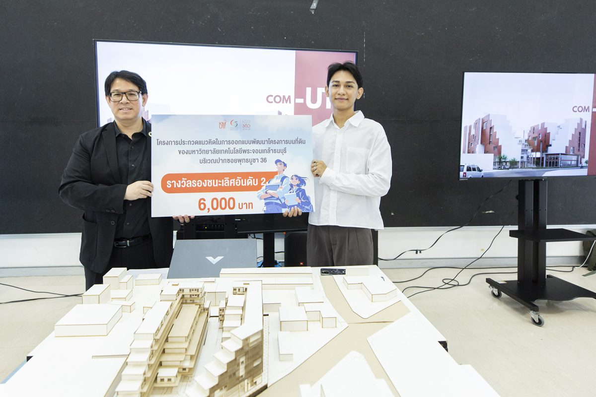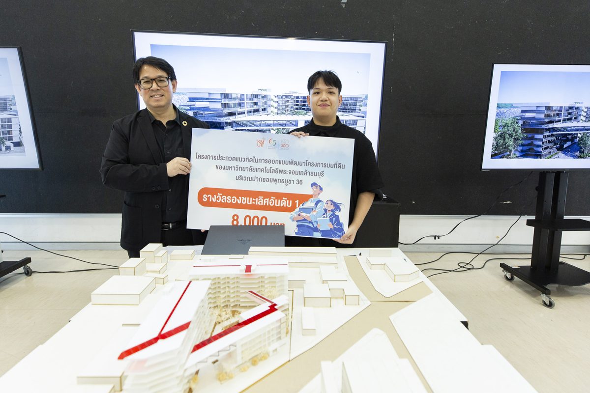เมื่อวันที่ 3 ตุลาคม 2568 มหาวิทยาลัยเทคโนโลยีพระจอมเกล้าธนบุรี (มจธ.) โดยคณะสถาปัตยกรรมศาสตร์และการออกแบบ จัดการประกวดออกแบบสถาปัตยกรรมในหัวข้อ “Integrated Living and Learning” เพื่อเฟ้นหาแนวคิดการพัฒนาโครงการบนที่ดินขนาด 4,800 ตารางเมตร บริเวณปากซอยพุทธบูชา 36 – 38 โดยมีเป้าหมายเพื่อสร้างพื้นที่การเรียนรู้และการอยู่อาศัยที่ผสานกับพันธกิจของมหาวิทยาลัย และสามารถต่อยอดสู่การพัฒนาจริงในอนาคต ณ ห้อง Jury HALL ชั้น 6 อาคารคณะสถาปัตยกรรมศาสตร์ มจธ.บางขุนเทียน