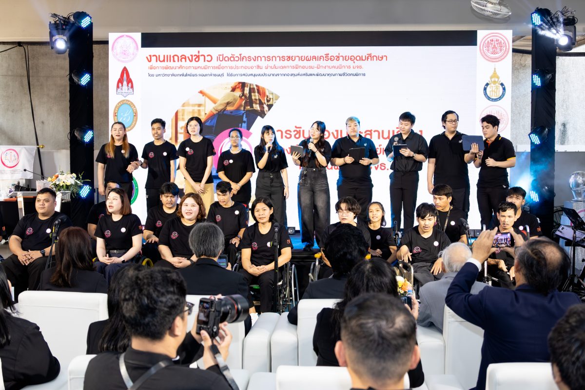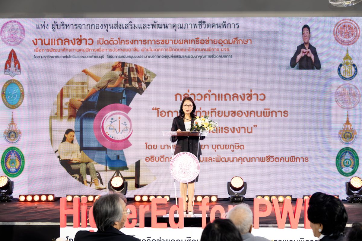 เมื่อวันที่ 30 มกราคม 2569 กรมส่งเสริมและพัฒนาคุณภาพชีวิตคนพิการ กระทรวงการพัฒนาสังคมและความมั่นคงของมนุษย์ (พม.) ร่วมกับ มหาวิทยาลัยเทคโนโลยีพระจอมเกล้าธนบุรี (มจธ.) และเครือข่ายมหาวิทยาลัยรวม 9 แห่ง จัดงานแถลงข่าวเปิดตัว “โครงการการขยายผลเครือข่ายอุดมศึกษาเพื่อการพัฒนาศักยภาพคนพิการเพื่อการประกอบอาชีพ ผ่านโมเดลการฝึกอบรม–ฝึกงานคนพิการ มจธ. ระยะที่ 2” ณ ลานอเนกประสงค์ ชั้น 1 อาคารจอดรถ 14 ชั้น (S2) มหาวิทยาลัยเทคโนโลยีพระจอมเกล้าธนบุรี (บางมด)