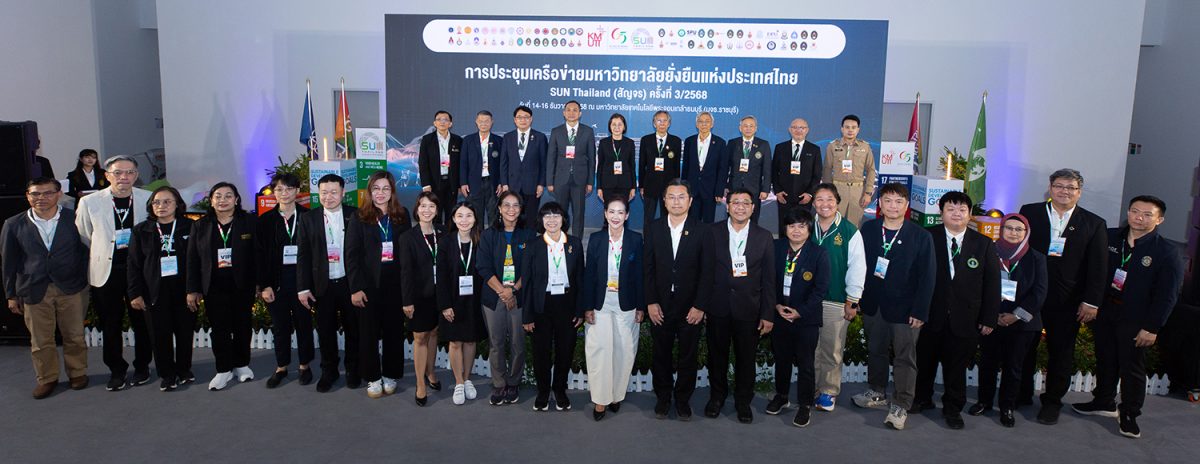 มหาวิทยาลัยเทคโนโลยีพระจอมเกล้าธนบุรี (มจธ.ราชบุรี) จัดการประชุมสมาชิกเครือข่ายมหาวิทยาลัยยั่งยืนแห่งประเทศไทย (SUN Thailand) สัญจร ครั้งที่ 3 ประจำปี 2568 และการประชุมคณะกรรมการเครือข่ายมหาวิทยาลัยยั่งยืน ครั้งที่ 4/2568 ระหว่างวันที่ 14–16 ธันวาคม 2568 ภายใต้ธีม “Crafting Sustainable Future Society by Residential College สร้างสรรค์สังคมสู่วิถีความยั่งยืนด้วยอาศรมแห่งการเรียนรู้” โดยมีสถาบันอุดมศึกษาจากทั่วประเทศเข้าร่วมแลกเปลี่ยนประสบการณ์และแนวทางการพัฒนามหาวิทยาลัยสู่ความยั่งยืนอย่างคึกคัก