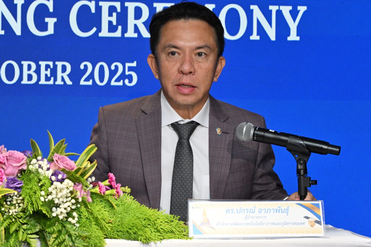เมื่อวันที่ 17 ตุลาคม 2568 มหาวิทยาลัยเทคโนโลยีพระจอมเกล้าธนบุรี (มจธ.) โดยศูนย์การศึกษาด้านการสื่อสารและการบริการครบวงจร สวท จัดพิธีลงนามบันทึกข้อตกลงความร่วมมือทางงานบริการวิชาการด้านเศรษฐกิจอวกาศ (Space Economy) กับสำนักงานพัฒนาเทคโนโลยีอวกาศและภูมิสารสนเทศ (องค์การมหาชน) หรือ GISTDA ณ ห้อง True Icon Hall ชั้น 7 ศูนย์การค้าไอคอนสยาม โดย ผศ.ดร.จิรศิลป์ จยาวรรณ หัวหน้าศูนย์การศึกษาด้านการสื่อสารและการบริการครบวงจร สำนักวิจัยและบริการวิทยาศาสตร์และเทคโนโลยี สวท กล่าวแนะนำหน่วยงานและความร่วมมือ