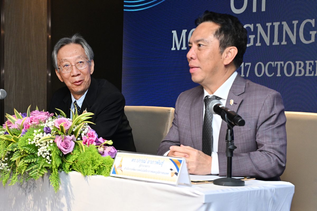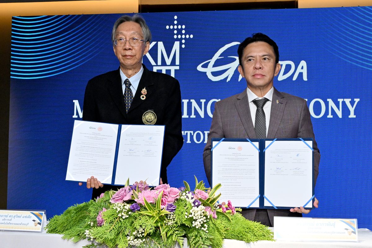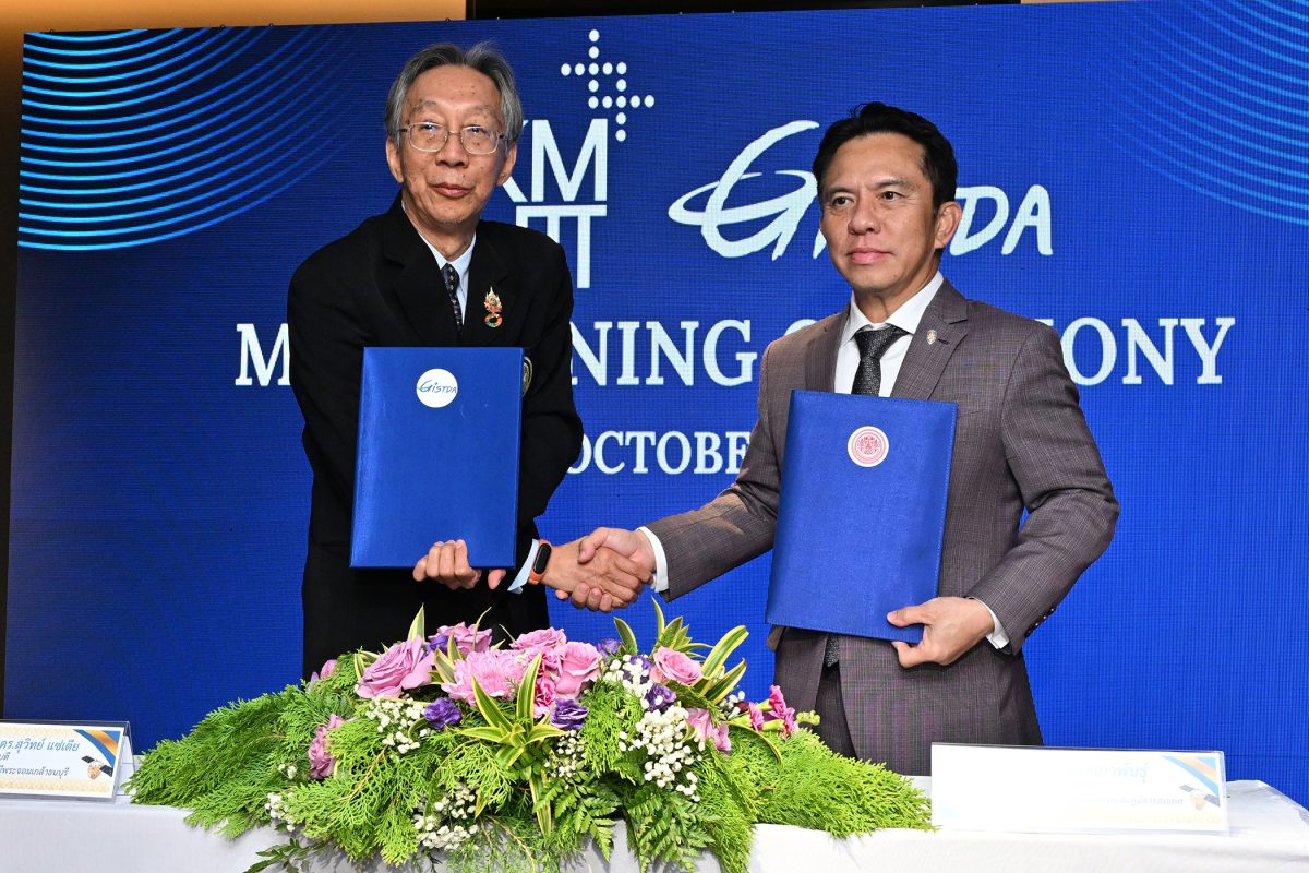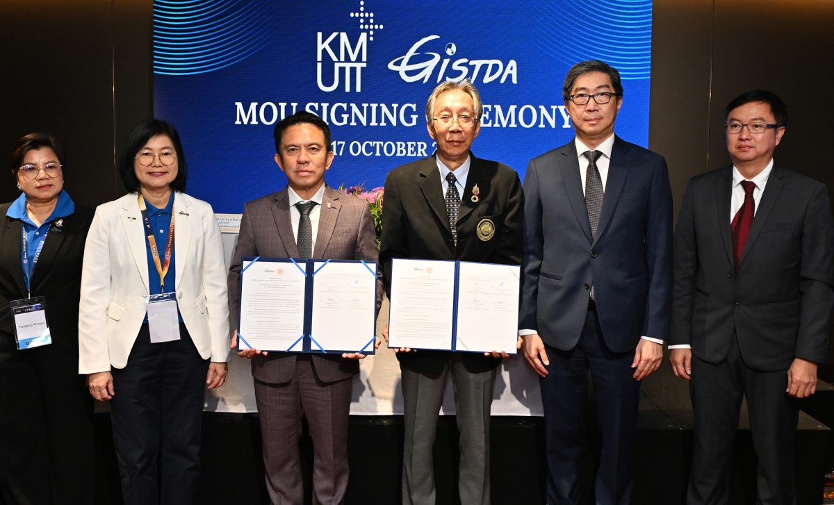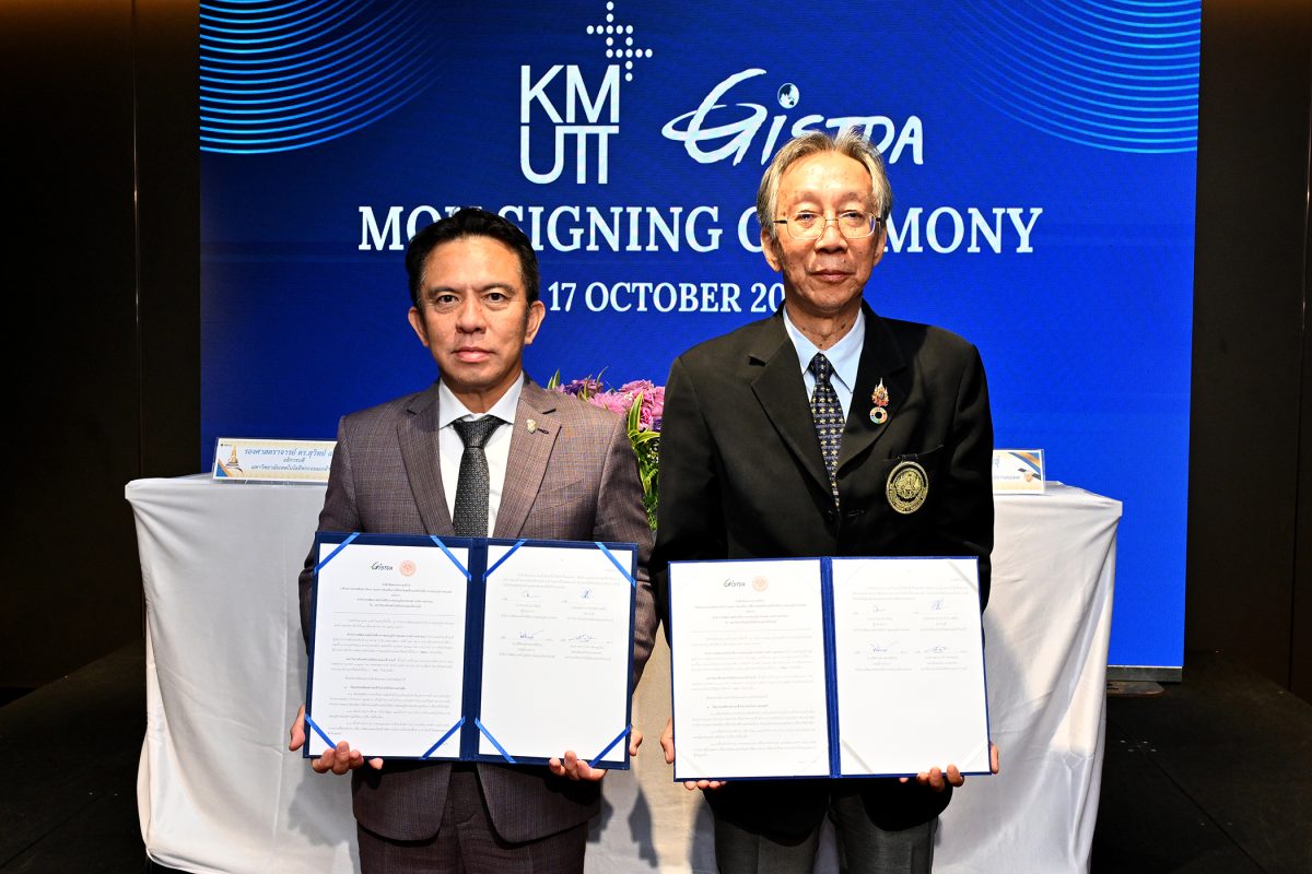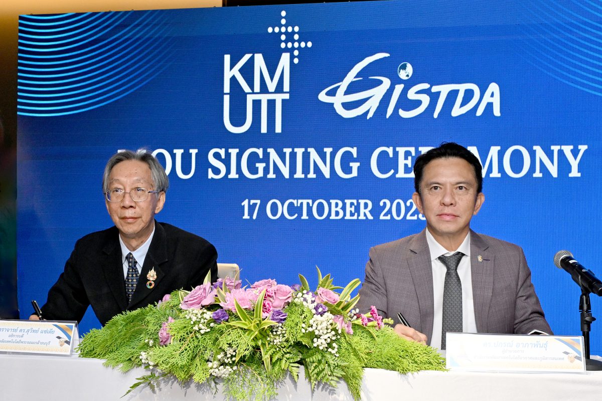 ในการนี้ รศ.ดร.สุวิทย์ แซ่เตีย อธิการบดีมหาวิทยาลัยเทคโนโลยีพระจอมเกล้าธนบุรี และ ดร.ปกรณ์ อาภาพันธุ์ ผู้อำนวยการสำนักงานพัฒนาเทคโนโลยีอวกาศและภูมิสารสนเทศ ร่วมลงนามในบันทึกข้อตกลง โดยมี ศ. ดร.สุทัศน์ ลีลาทวีวัฒน์ ผู้อำนวยการสำนักวิจัยและบริการวิทยาศาสตร์และเทคโนโลยี พร้อมด้วยผู้บริหารจากทั้งสองหน่วยงานร่วมเป็นสักขีพยาน