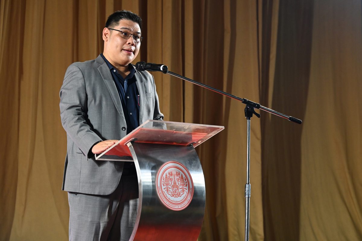 บรรยากาศภายในงานเริ่มต้นด้วยความอบอุ่น โดยมี รศ. ดร.สุวิทย์ แซ่เตีย อธิการบดี ให้เกียรติเป็นประธานกล่าวเปิดงานและอวยพรปีใหม่ เพื่อเสริมสร้างกำลังใจในการทำงานและการดำเนินชีวิตแก่ประชาคมชาว มจธ. นอกจากนี้ ดร.ก้องกาญจน์ วชิรพนัง รองอธิการบดีฝ่ายบุคคล ได้กล่าวรายงานวัตถุประสงค์การจัดงานที่เน้นความสามัคคีและการเทิดทูนสถาบัน