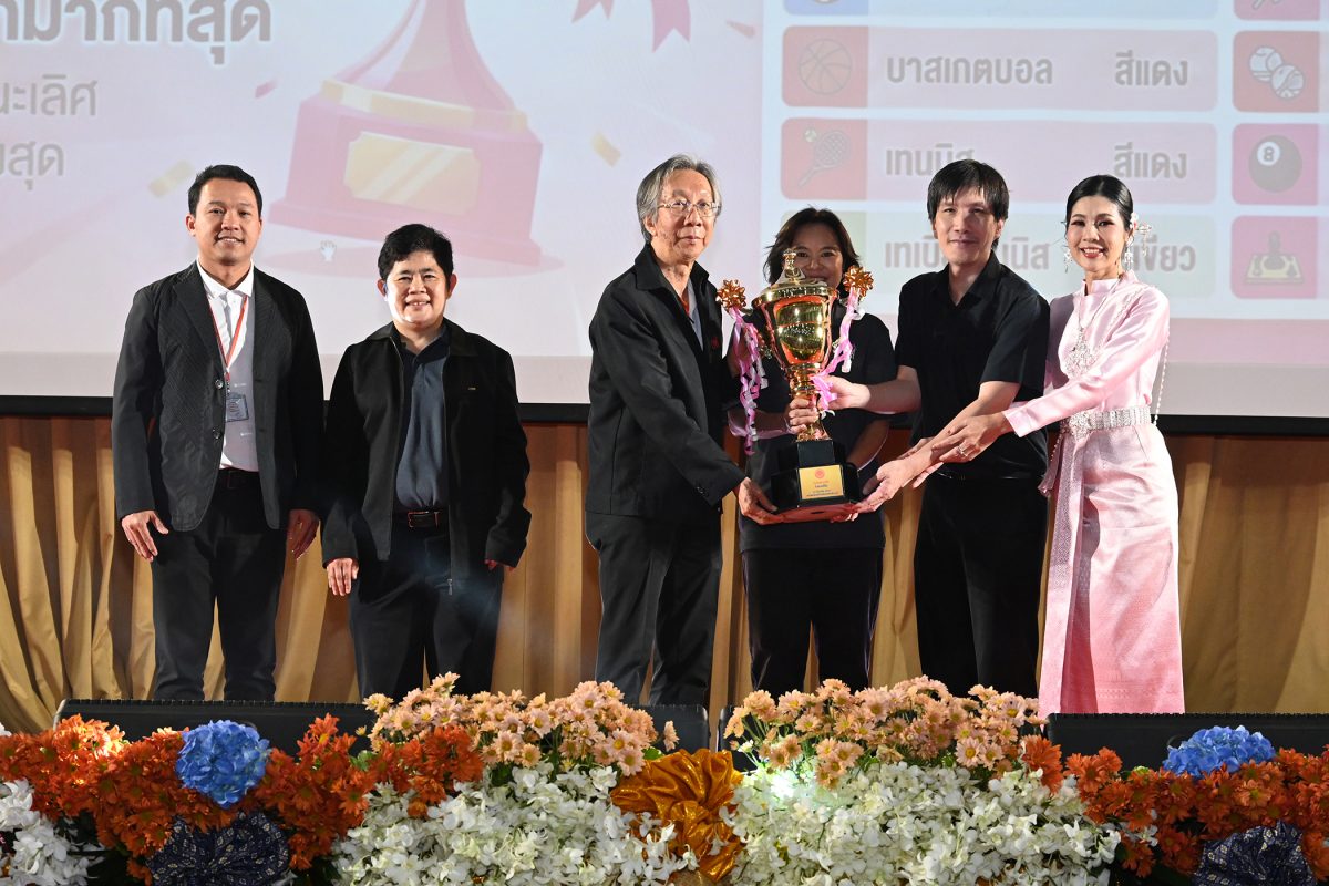 นอกจากความงดงามทางวัฒนธรรมแล้ว ยังมีช่วงเวลาแห่งความสามัคคีกับการประกาศผลและมอบถ้วยรางวัลการแข่งขันกีฬาสีบุคลากร ประจำปี 2568 โดย ผศ. ดร.วันดี อ่อนเรียบร้อย ประธานสโมสรพนักงานฯ เป็นผู้กล่าวรายงานผล และปิดท้ายค่ำคืนด้วยความสนุกสนานจากการลุ้นรางวัลพิเศษมากมายที่ผู้บริหารมอบให้เพื่อเป็นของขวัญแก่บุคลากร