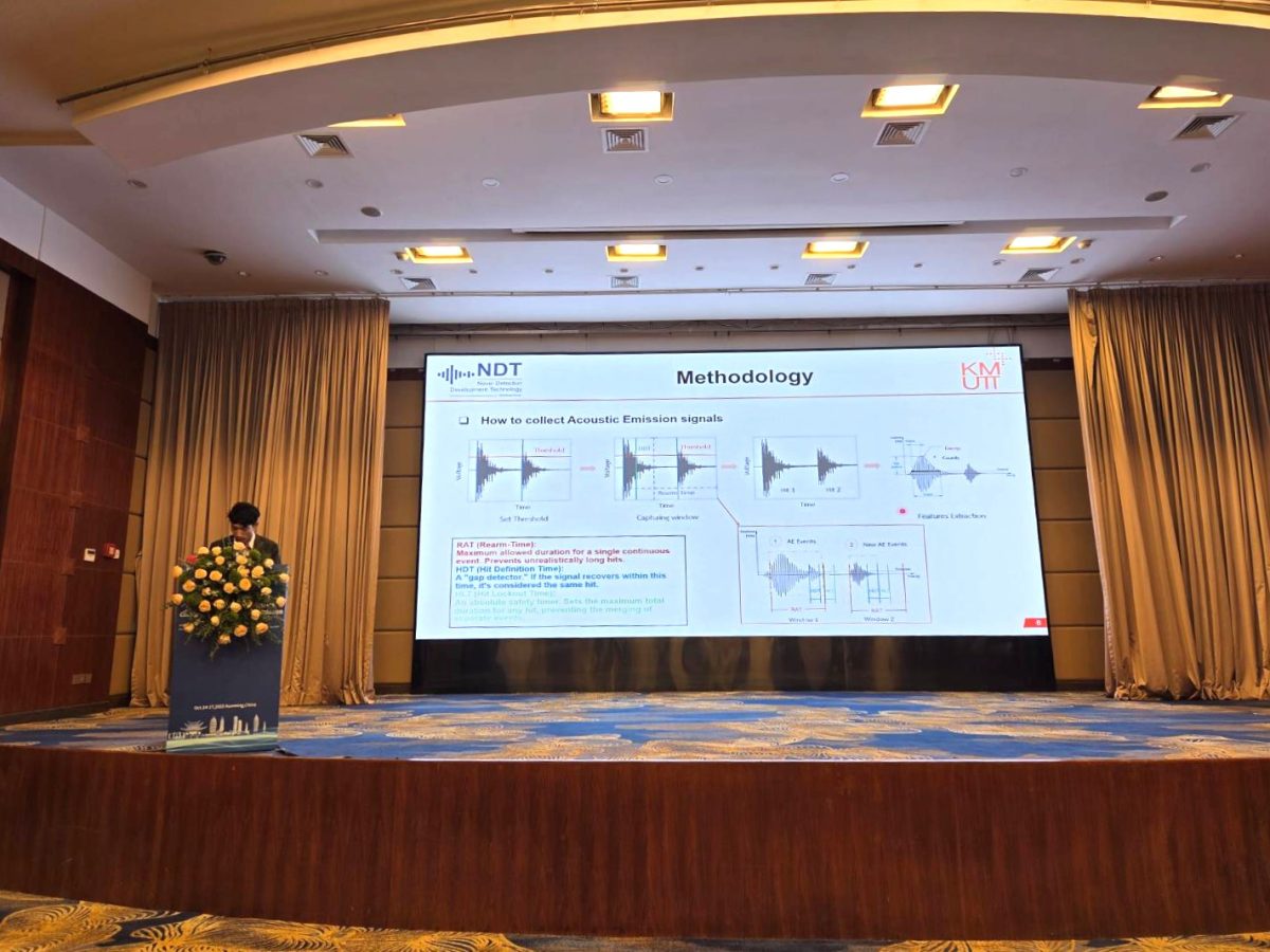 เมื่อวันที่ 14-17 ตุลาคม 2568 นักศึกษาภาควิชาวิศวกรรมอุตสาหการ คณะวิศวกรรมศาสตร์ มหาวิทยาลัยเทคโนโลยีพระจอมเกล้าธนบุรี (มจธ.) เข้าร่วมงานสัมมนาวิชาการ “7th World Conference on Acoustic Emission (WCAE– 2025)” จัดโดย International Society on Acoustic Emission (ISAE) ณ นครคุนหมิง สาธารณรัฐประชาชนจีน