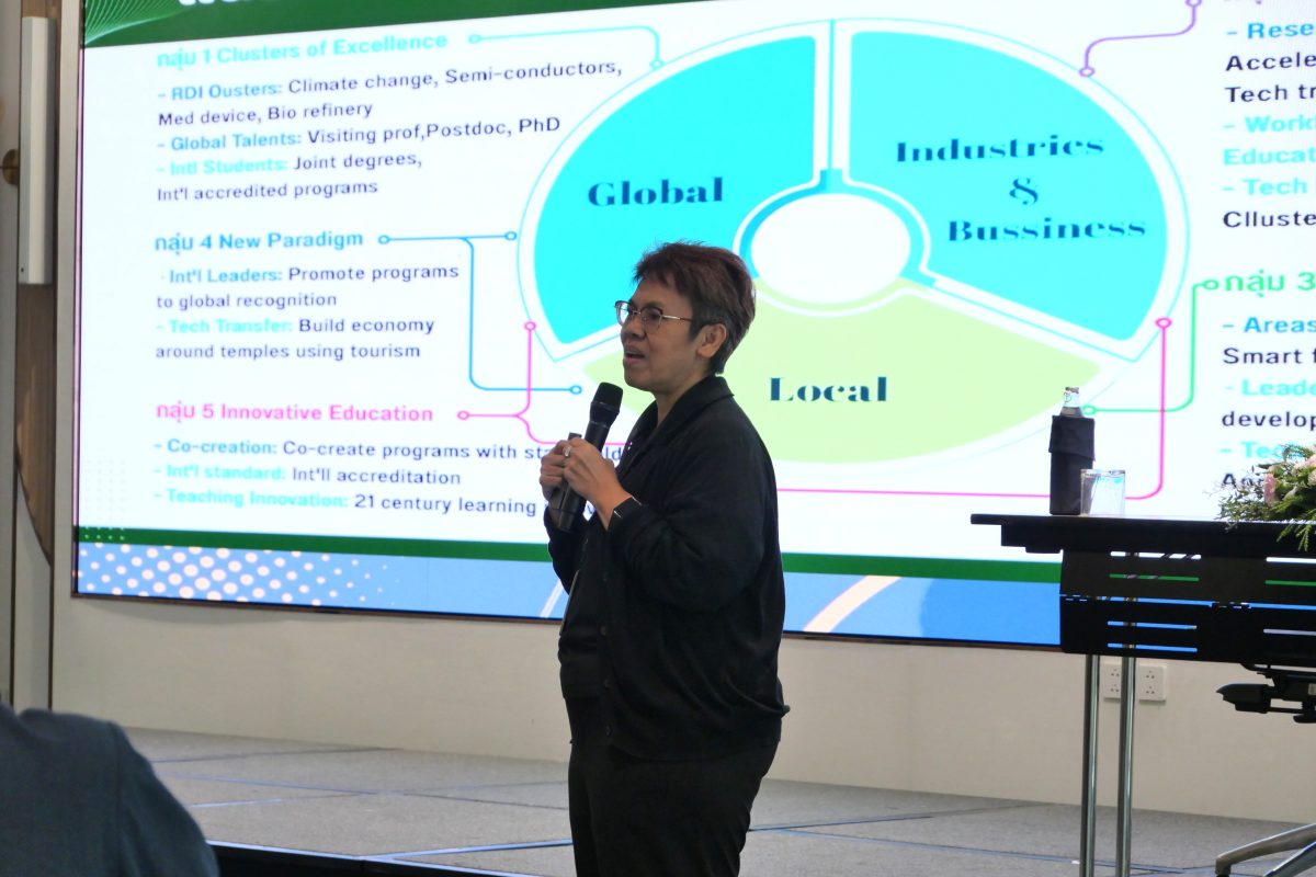 เมื่อวันที่ 31 ตุลาคม – 2 พฤศจิกายน 2568 ได้มีการจัด “การอบรมเชิงปฏิบัติการ Executive ระยะที่ 2” โดยคัดเลือกผู้บริหารระดับสูงจากมหาวิทยาลัยกลุ่ม 5 กลุ่มผลิตและพัฒนาบุคลากรวิชาชีพและสาขาจำเพาะ รวม 12 แห่ง (48 ท่าน) เพื่อร่วมกันวางแผนกลยุทธ์การพลิกโฉมมหาวิทยาลัย (Reinventing University) ให้สอดคล้องกับทิศทางของประเทศและความต้องการกำลังคนในอนาคต โดยได้รับเกียรติจาก รองศาสตราจารย์ ดร. บัณฑิต ทิพากร ประธานคณะอนุกรรมการเฉพาะกิจโครงการผลิตบัณฑิตพันธุ์ใหม่ฯ มาบรรยายในหัวข้อ “ทิศทางกำลังคนโลกและการเปลี่ยนแปลงทางการศึกษา” เพื่อให้ผู้เข้าร่วมได้รับทราบข้อมูลและแนวโน้มที่สำคัญ นอกจากนี้ ผู้ช่วยศาสตราจารย์ ดร. ศศิธร สุวรรณเทพ หัวหน้าโครงการ ได้นำเสนอ “แนวทางในการพัฒนาความเป็นเลิศของสถาบันอุดมศึกษากลุ่มที่ 5” และการสำรวจความพร้อมในการพลิกโฉมสถาบันฯ
