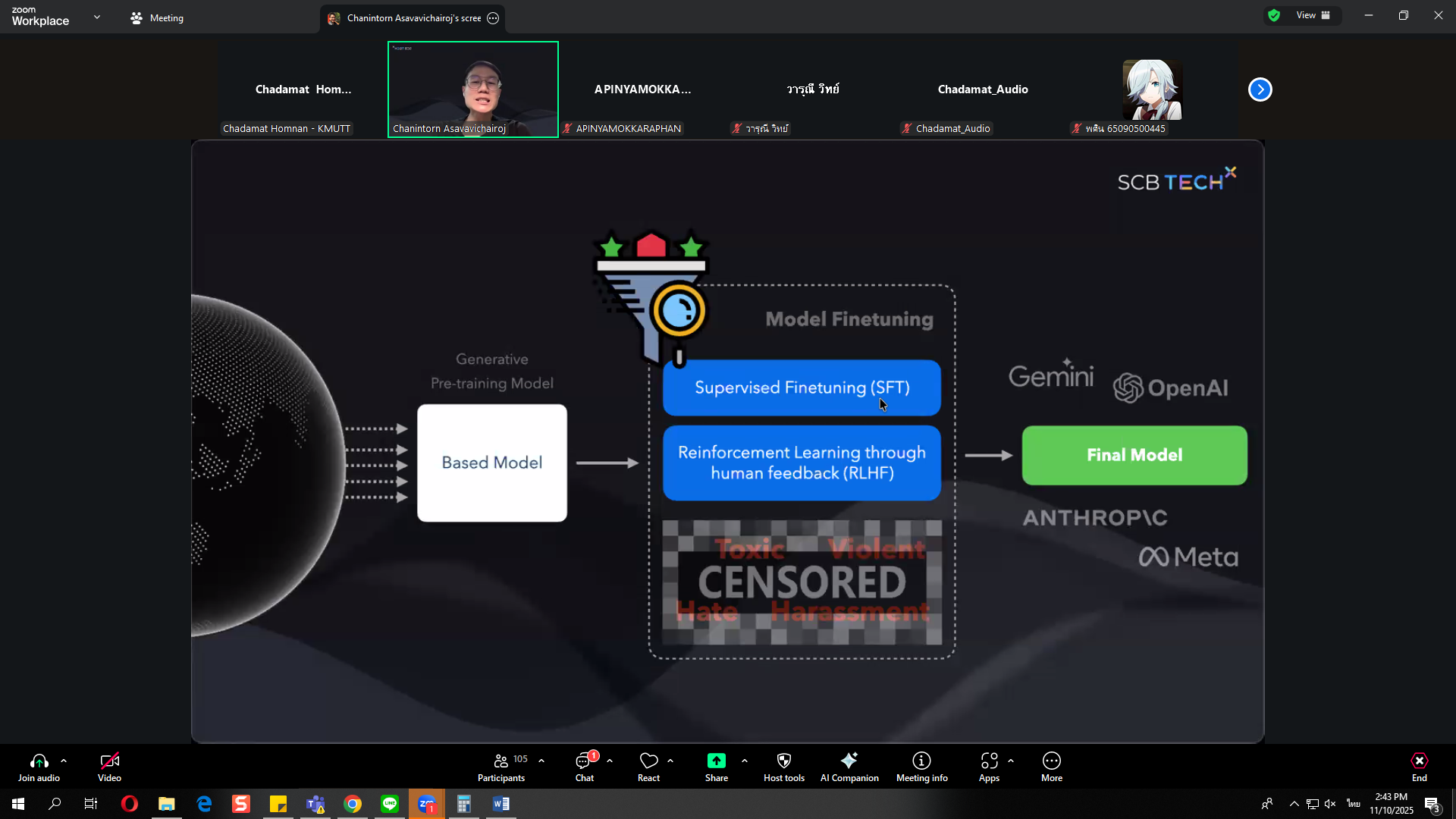 LLM ถือเป็น Foundation Model ที่สามารถนำไปประยุกต์ใช้กับงานหลากหลายประเภท เช่น Chatbot Q&A Text Generation Summarization เป็นต้น การสร้าง LLM ต้องผ่านกระบวนการเรียนรู้จากข้อมูลทั่วโลก (Base Model) จากนั้นทำการ Fine-tuning โดยผู้เชี่ยวชาญหรืออัลกอริทึม เพื่อให้ได้ Final Model ที่มีความปลอดภัยและเหมาะสมต่อการใช้งาน ตัวอย่างเช่น Gemini OpenAI เป็นต้น