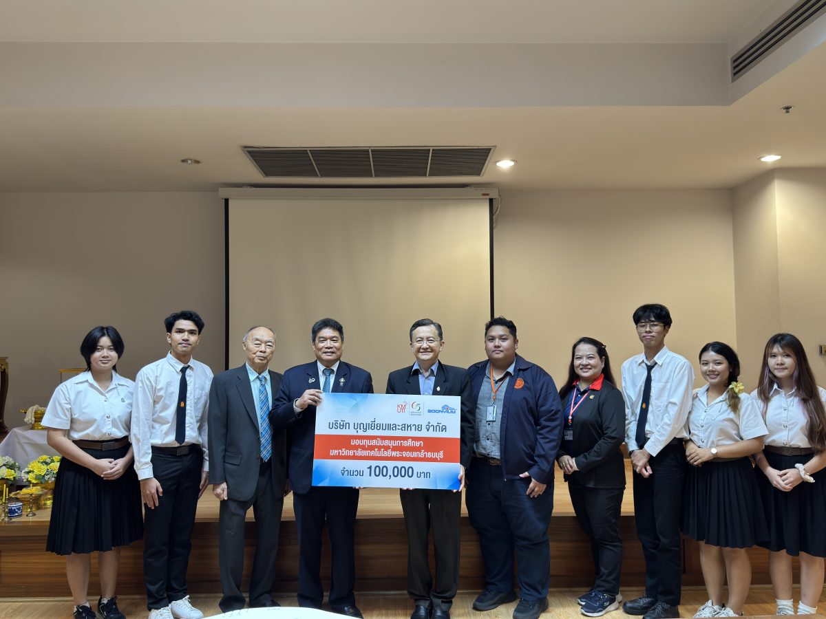 ในปีการศึกษา 2568 บริษัทฯ ได้มอบทุนการศึกษาให้แก่นักศึกษามหาวิทยาลัยเทคโนโลยีพระจอมเกล้าธนบุรี (มจธ.) จำนวน 5 ทุน รวมมูลค่า 100,000 บาท เป็นทุนการศึกษาให้เปล่าโดยไม่มีข้อผูกมัด ต่อเนื่องจนสำเร็จการศึกษาตามหลักสูตรและพร้อมยินดีรับนักศึกษาเข้าฝึกงานตามกำหนดการของมหาวิทยาลัย