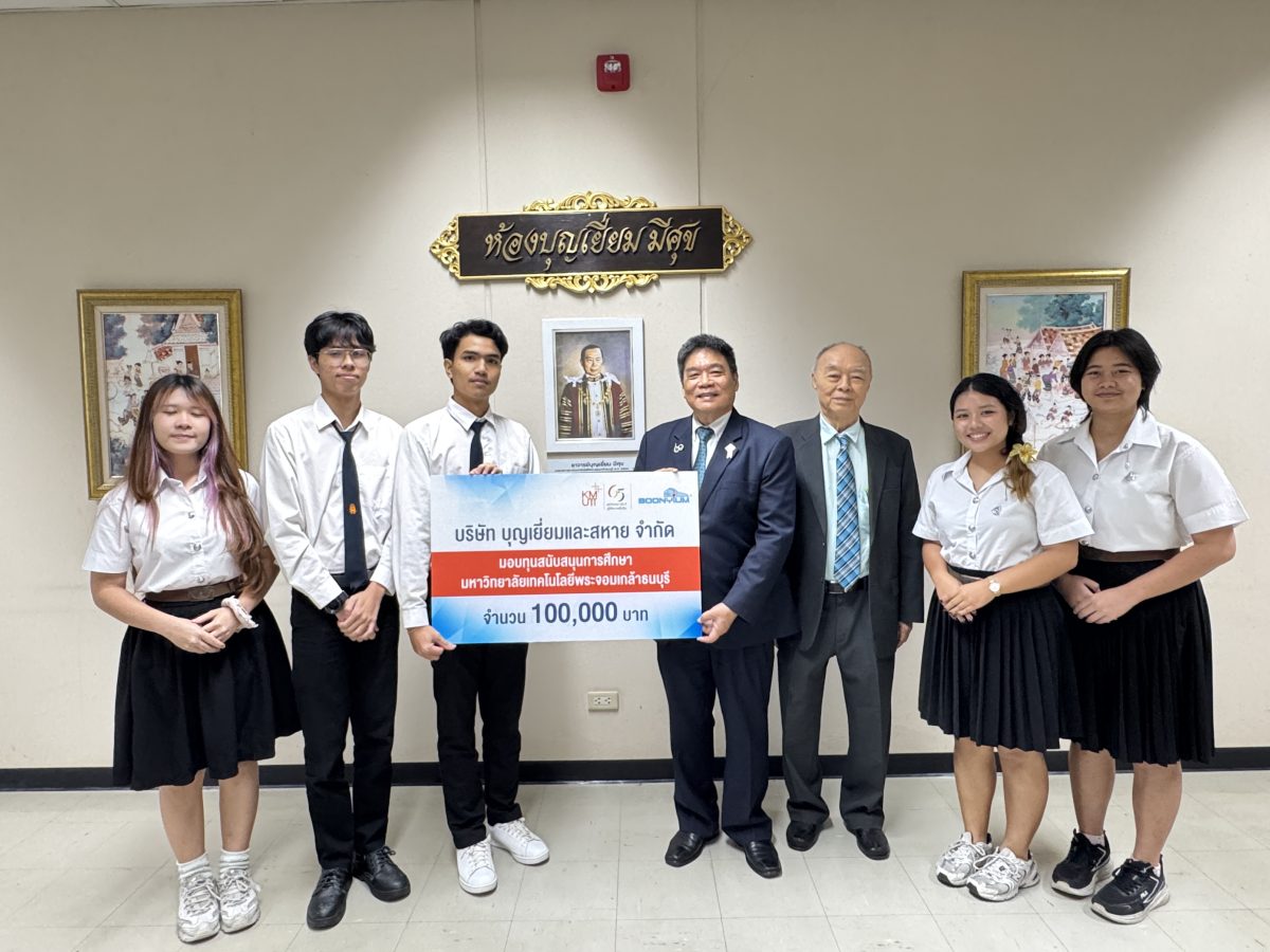 มหาวิทยาลัยเทคโนโลยีพระจอมเกล้าธนบุรี ขอขอบคุณ บริษัท บุญเยี่ยมและสหาย จำกัด ที่มอบทุนการศึกษาอย่างต่อเนื่องให้แก่นักศึกษา มจธ. เพื่อสร้างโอกาสในการศึกษาและพัฒนาคนรุ่นใหม่สู่สังคมไทย