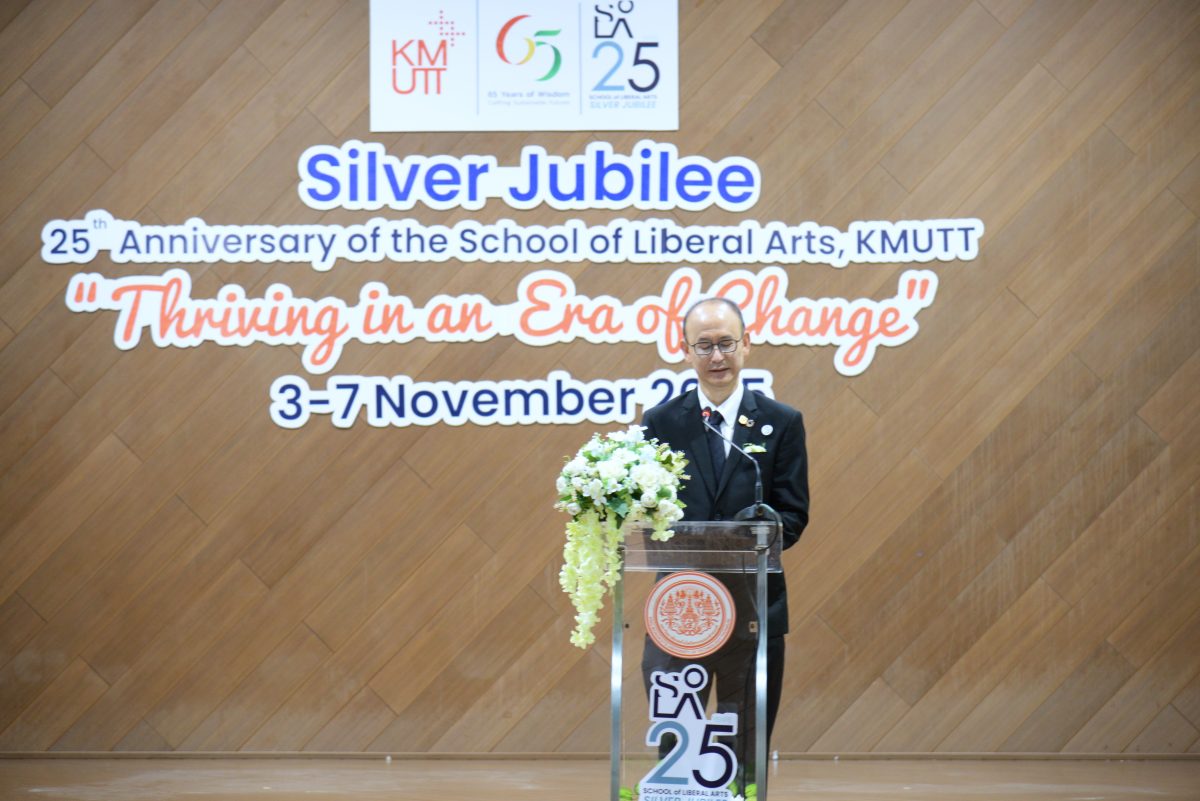 คณะศิลปศาสตร์ มหาวิทยาลัยเทคโนโลยีพระจอมเกล้าธนบุรี จัดงานครบรอบ 25 ปี แห่งการก่อตั้ง คณะศิลปศาสตร์ ภายใต้แนวคิด “Thriving in an Era of Change” ระหว่างวันที่ 3–7 พฤศจิกายน 2568 ณ คณะศิลปศาสตร์ มจธ. โดยมีวัตถุประสงค์เพื่อครบรอบวาระสำคัญของคณะ สะท้อนความก้าวหน้าทางวิชาการ และสร้างแรงบันดาลใจให้บุคลากร นักศึกษา และศิษย์เก่าได้ร่วมภาคภูมิใจในเส้นทางแห่งศิลปศาสตร์ที่เติบโตเคียงข้างมหาวิทยาลัยตลอด 25 ปีที่ผ่านมา
