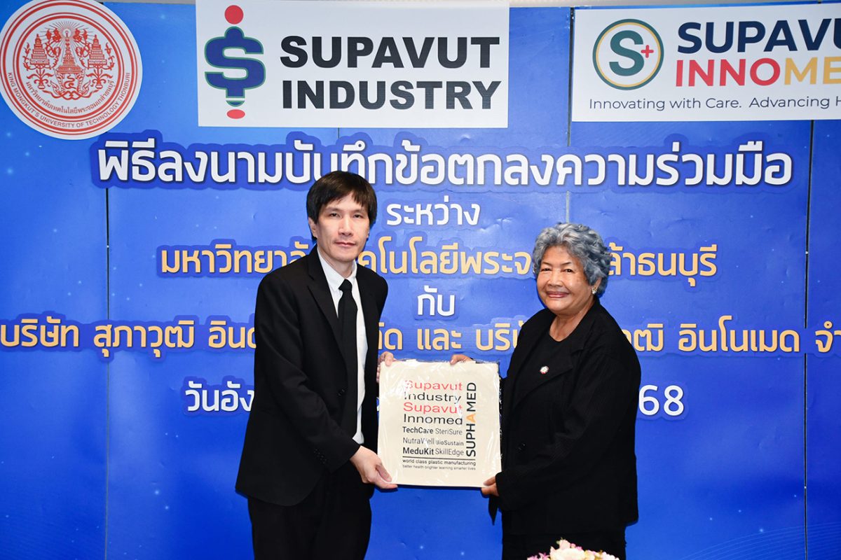 พิธีดังกล่าวได้รับเกียรติจาก ดร.กัญญวิมว์ กีรติกร รองอธิการบดีอาวุโสฝ่ายวิจัยและนวัตกรรม มหาวิทยาลัยเทคโนโลยีพระจอมเกล้าธนบุรีเป็นประธานฝ่ายมหาวิทยาลัย ทางฝ่ายภาคเอกชน นำโดย คุณมะลิ ผิวทอง ประธานบริษัท สุภาวุฒิ อินดัสทรี จำกัด และ คุณวุฒิชัย ผิวทอง ประธานบริษัท สุภาวุฒิ อินโนเมด จำกัด พร้อมคณะผู้บริหาร