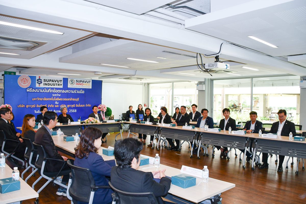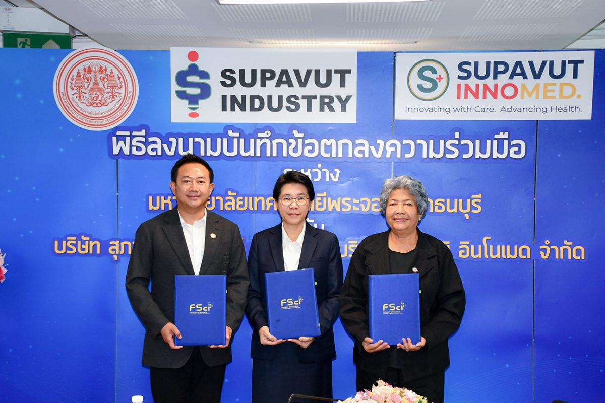 เมื่อวันอังคารที่ 16 ธันวาคม พ.ศ. 2568 คณะวิทยาศาสตร์ มหาวิทยาลัยเทคโนโลยีพระจอมเกล้าธนบุรี (มจธ.) จัดพิธีลงนามบันทึกข้อตกลงความร่วมมือด้านการวิจัย การพัฒนานักศึกษา และการพัฒนาบุคลากร ระหว่าง มหาวิทยาลัยเทคโนโลยีพระจอมเกล้าธนบุรี กับ บริษัท สุภาวุฒิ อินดัสทรี จำกัดและบริษัท สุภาวุฒิ อินโนเมด จำกัด ณ ห้องประชุม Science Connect คณะวิทยาศาสตร์ มจธ.