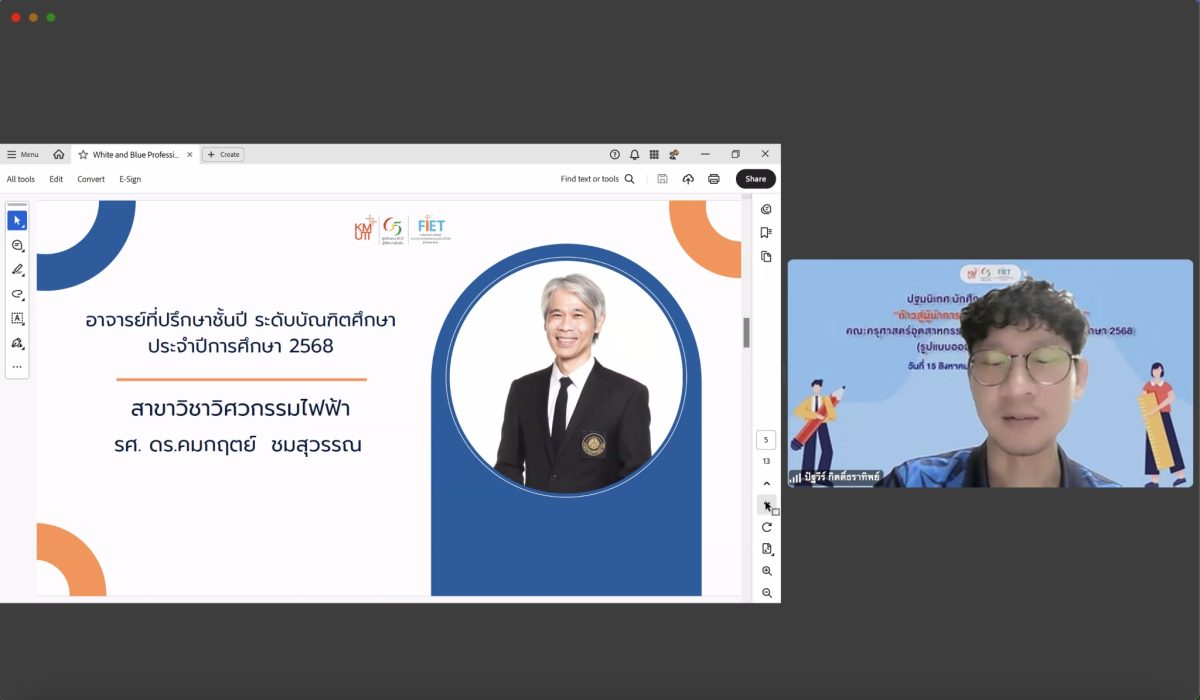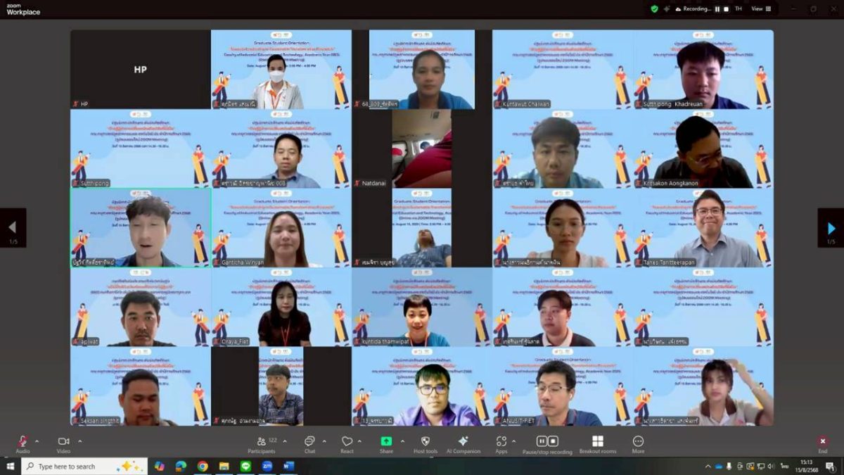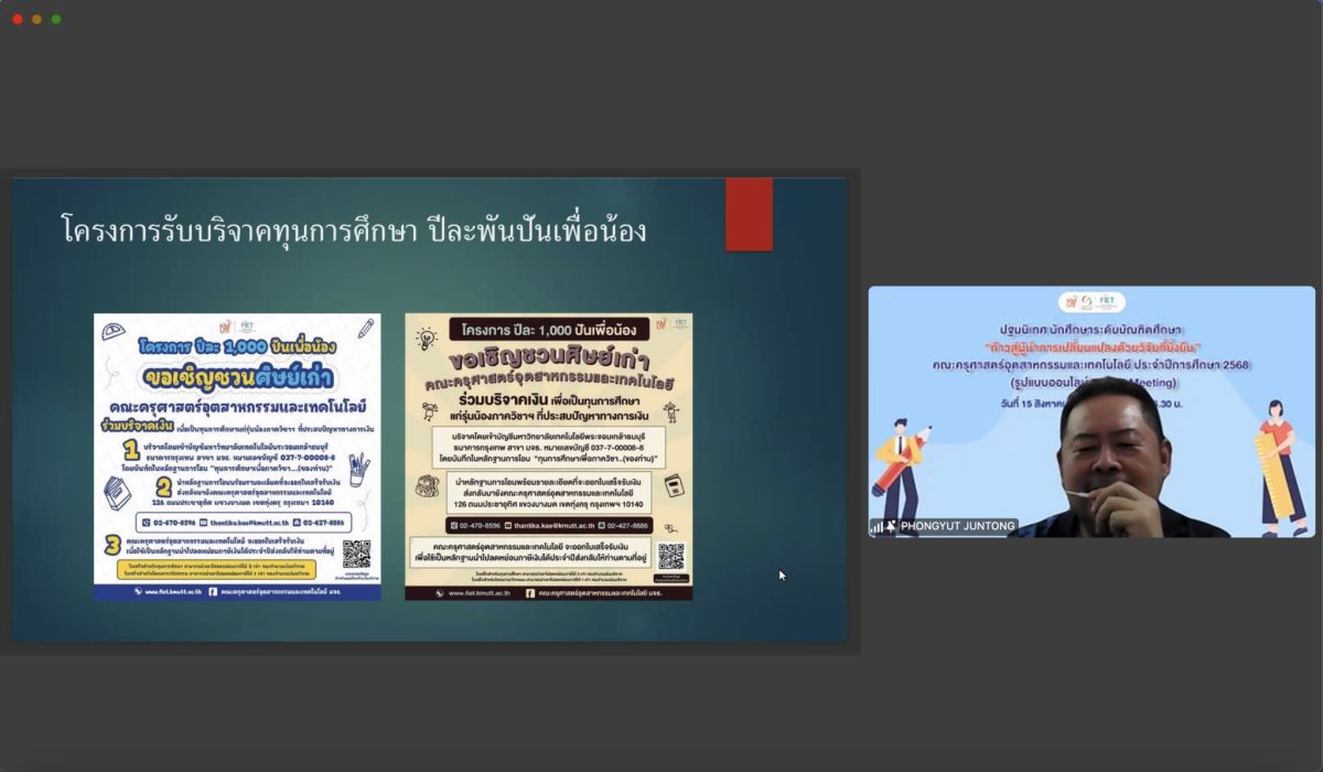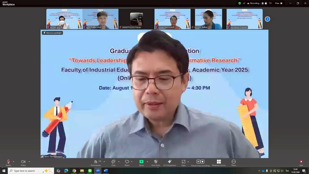 เมื่อวันที่ 15 สิงหาคม 2568 เวลา 14.30-16.30 น. คณะครุศาสตร์อุตสาหกรรมฯ มจธ. จัดกิจกรรมปฐมนิเทศนักศึกษาระดับบัณฑิตศึกษา ประจำปีการศึกษา 2568 ในรูปแบบออนไลน์ผ่านระบบ ZOOM Meeting ภายใต้หัวข้อ “ก้าวสู่ผู้นำการเปลี่ยนแปลงด้วยวิจัยที่ยั่งยืน” กิจกรรมเริ่มต้นด้วยการรับชมวีดิทัศน์แนะนำคณะครุศาสตร์อุตสาหกรรมและเทคโนโลยี จากนั้น รศ.ดร.ธเนศ ธนิตย์ธีรพันธ์ คณบดีคณะครุศาสตร์อุตสาหกรรมและเทคโนโลยี ให้เกียรติเป็นประธานกล่าวเปิดกิจกรรมและต้อนรับนักศึกษาระดับบัณฑิตศึกษาของคณะพร้อมด้วยผู้บริหาร อาจารย์ และเจ้าหน้าที่ ภายในกิจกรรมได้มีการบรรยายแนะนำภาพรวมของหลักสูตร ในหัวข้อเรื่อง “ทำอย่างไรให้เรียนจบตามระยะเวลาของหลักสูตร” โดย รศ.ดร.คมกฤตย์ ชมสุวรรณ รองคณบดีฝ่ายวิชาการและระบบการศึกษา ต่อด้วยการให้ข้อมูลและคำแนะนำเกี่ยวกับการใช้ชีวิตในรั้วมหาวิทยาลัย (มจธ.) โดย รศ.ดร.กุลธิดา ธรรมวิภัชน์ รองคณบดีฝ่ายพัฒนานักศึกษาและสื่อสารองค์กร ก่อนปิดท้ายด้วยการแนะนำเครือข่ายศิษย์เก่าของคณะ โดย รศ.ดร.พงศ์ยุทธ์ จั่นทอง ผู้ช่วยคณบดีฝ่ายพัฒนานวัตกรรมเครือข่ายศิษย์เก่า ปิดท้ายด้วยวีดิทัศน์แนะนำอาจารย์ที่ปรึกษาชั้นปี เจ้าหน้าที่ที่เกี่ยวข้อง ช่องทางการติดต่อ และเชิญชวนนักศึกษาเข้าร่วมกลุ่ม LINE OA (FIET GRADUATE) สำหรับบัณฑิตศึกษา เพื่อติดตามข้อมูล แลกเปลี่ยน ซักถามข้อสงสัยได้ตลอดหลักสูตร ทั้งนี้มีผู้เข้าร่วมกิจกรรมทั้งสิ้นกว่า 150 คน
