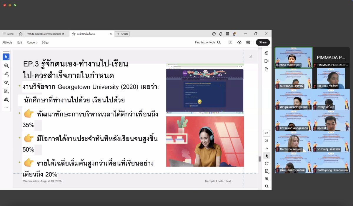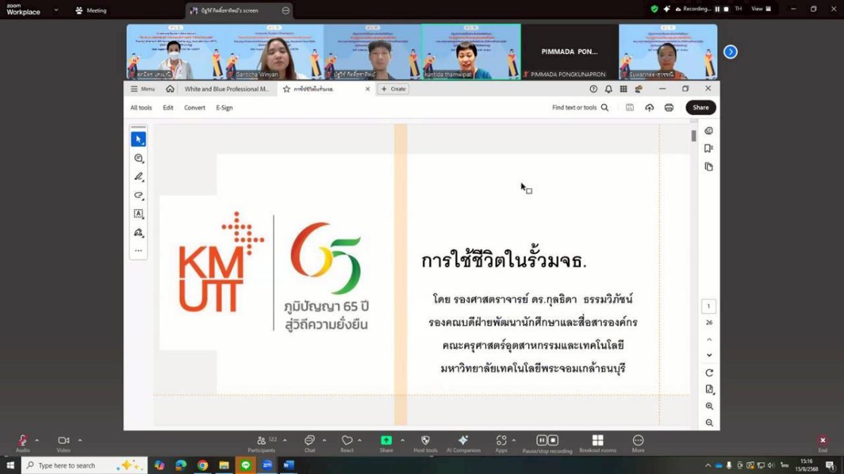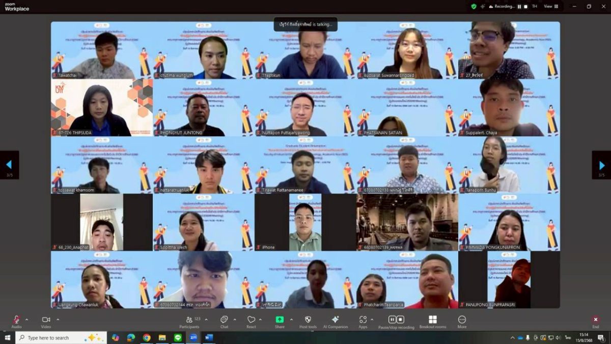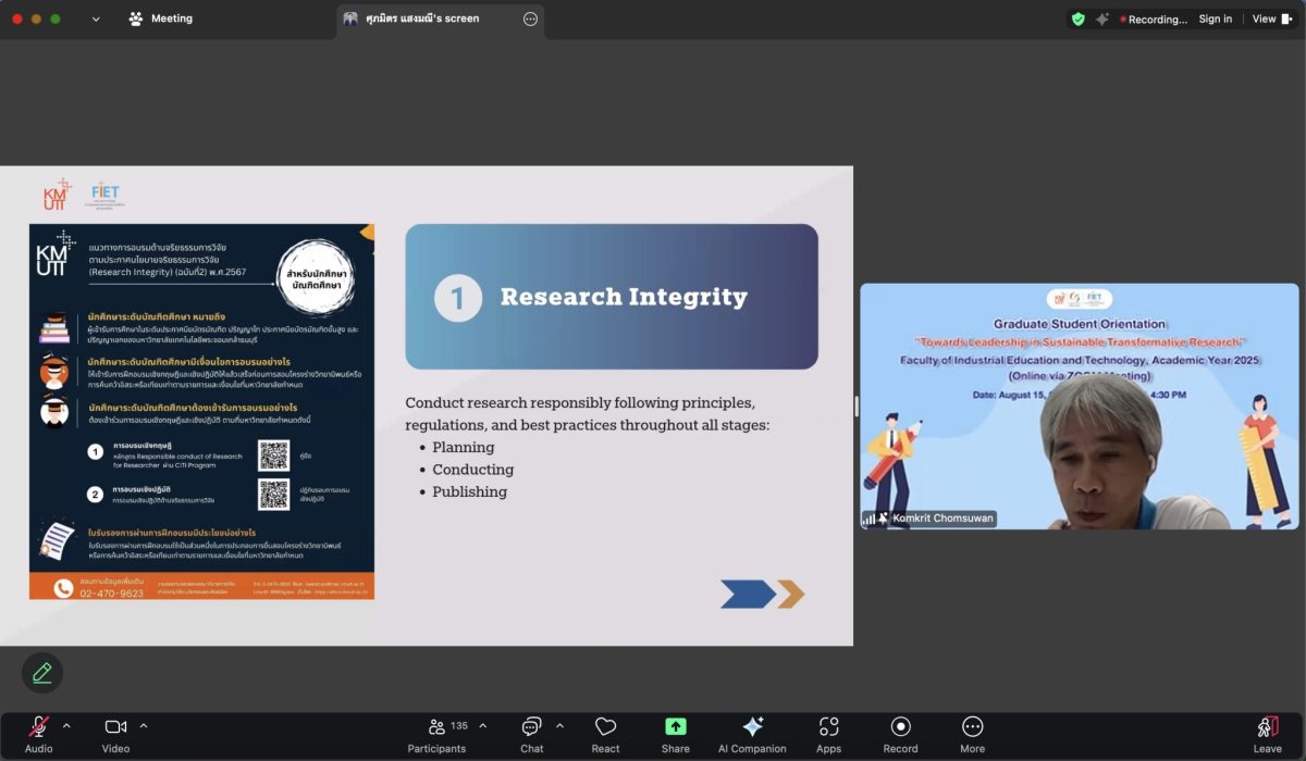 เมื่อวันที่ 15 สิงหาคม 2568 เวลา 14.30-16.30 น. คณะครุศาสตร์อุตสาหกรรมฯ มจธ. จัดกิจกรรมปฐมนิเทศนักศึกษาระดับบัณฑิตศึกษา ประจำปีการศึกษา 2568 ในรูปแบบออนไลน์ผ่านระบบ ZOOM Meeting ภายใต้หัวข้อ “ก้าวสู่ผู้นำการเปลี่ยนแปลงด้วยวิจัยที่ยั่งยืน” กิจกรรมเริ่มต้นด้วยการรับชมวีดิทัศน์แนะนำคณะครุศาสตร์อุตสาหกรรมและเทคโนโลยี จากนั้น รศ.ดร.ธเนศ ธนิตย์ธีรพันธ์ คณบดีคณะครุศาสตร์อุตสาหกรรมและเทคโนโลยี ให้เกียรติเป็นประธานกล่าวเปิดกิจกรรมและต้อนรับนักศึกษาระดับบัณฑิตศึกษาของคณะพร้อมด้วยผู้บริหาร อาจารย์ และเจ้าหน้าที่ ภายในกิจกรรมได้มีการบรรยายแนะนำภาพรวมของหลักสูตร ในหัวข้อเรื่อง “ทำอย่างไรให้เรียนจบตามระยะเวลาของหลักสูตร” โดย รศ.ดร.คมกฤตย์ ชมสุวรรณ รองคณบดีฝ่ายวิชาการและระบบการศึกษา ต่อด้วยการให้ข้อมูลและคำแนะนำเกี่ยวกับการใช้ชีวิตในรั้วมหาวิทยาลัย (มจธ.) โดย รศ.ดร.กุลธิดา ธรรมวิภัชน์ รองคณบดีฝ่ายพัฒนานักศึกษาและสื่อสารองค์กร ก่อนปิดท้ายด้วยการแนะนำเครือข่ายศิษย์เก่าของคณะ โดย รศ.ดร.พงศ์ยุทธ์ จั่นทอง ผู้ช่วยคณบดีฝ่ายพัฒนานวัตกรรมเครือข่ายศิษย์เก่า ปิดท้ายด้วยวีดิทัศน์แนะนำอาจารย์ที่ปรึกษาชั้นปี เจ้าหน้าที่ที่เกี่ยวข้อง ช่องทางการติดต่อ และเชิญชวนนักศึกษาเข้าร่วมกลุ่ม LINE OA (FIET GRADUATE) สำหรับบัณฑิตศึกษา เพื่อติดตามข้อมูล แลกเปลี่ยน ซักถามข้อสงสัยได้ตลอดหลักสูตร ทั้งนี้มีผู้เข้าร่วมกิจกรรมทั้งสิ้นกว่า 150 คน