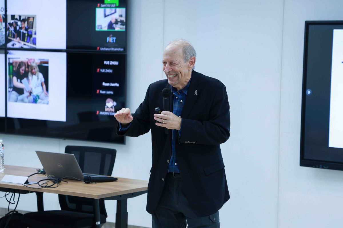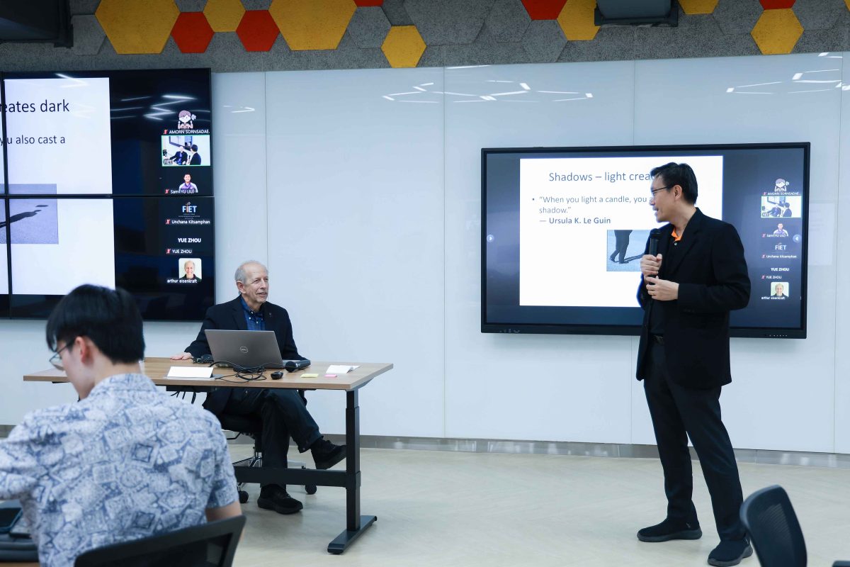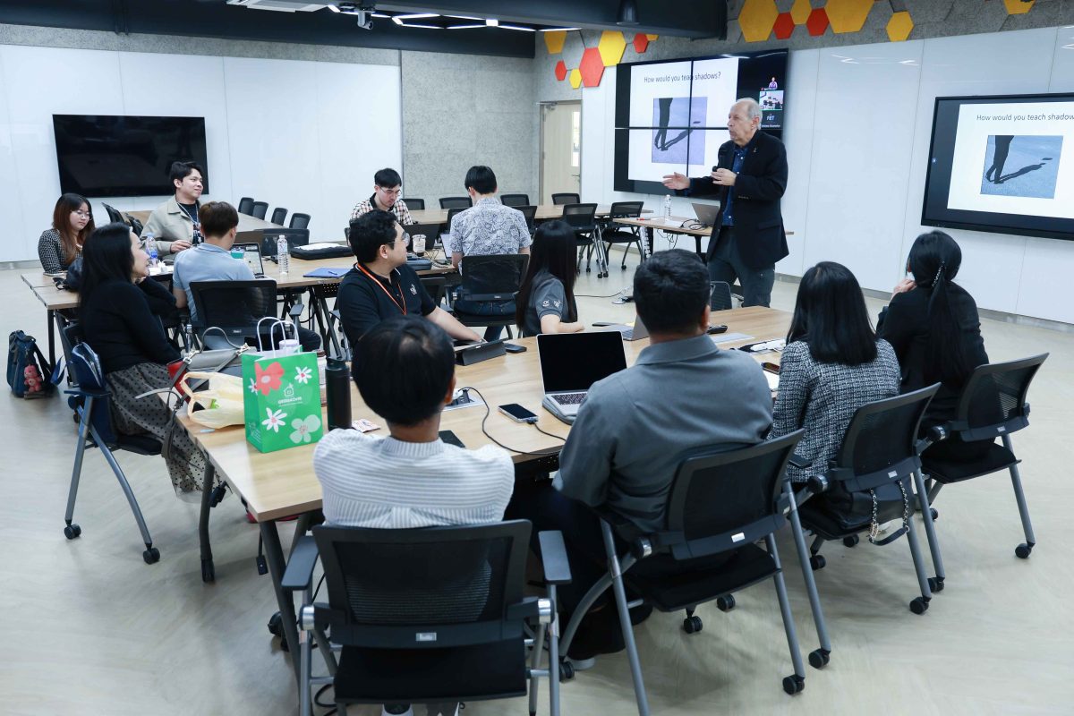 เมื่อวันที่ 15 มกราคม 2569 สาขาวิชานวัตกรรมการเรียนรู้และเทคโนโลยี คณะครุศาสตร์อุตสาหกรรมและเทคโนโลยี มจธ.จัดบรรยายพิเศษ “STEM, Project-Base Learning : Active Learning and Assessment in Science and Engineering” ณ ห้อง Smart Classroom โดยวิทยากร Dr. Arthur Eisenkraft ศาสตราจารย์วุฒิคุณสาขาฟิสิกส์ มาบรรยายในหัวข้อดังกล่าวฯ พร้อมด้วย รศ.ดร.คมกฤตย์ ชมสุวรรณ รองคณบดีฝ่ายวิชาการและระบบการศึกษา, ผศ.ดร.มงคล นามลักษณ์ ผู้อำนวยการหลักสูตรนวัตกรรมการเรียนรู้และเทคโนโลยี กล่าวต้อนรับวิทยากรและผู้เข้าร่วม ซึ่งกิจกรรมดังกล่าวนี้จัดขึ้นเพื่อเสริมสร้างความรู้สำหรับหลักสูตรระดับปริญญาเอก ใช้หลักการเรียนรู้ตามวัฏจักรการเรียนรู้ 7 ขั้น (7E) คือ (Engage, Explore, Explain, Elaborate, Extend, Evaluate, and Elicit) นำไปสู่การที่ผู้เรียนสร้างองค์ความรู้ได้ด้วยตนเอง พัฒนาทักษะอาชีพของประเทศไทยที่ใช้แบบเรียน Active Physics เช่นเดียวกับผู้เรียนในสายอาชีวะศึกษาในประเทศสหรัฐอเมริกา เพื่อให้เกิดความเข้าใจอย่างลึกซึ้ง และนำไปประยุกต์ใช้ในการแก้ปัญหาได้จริง