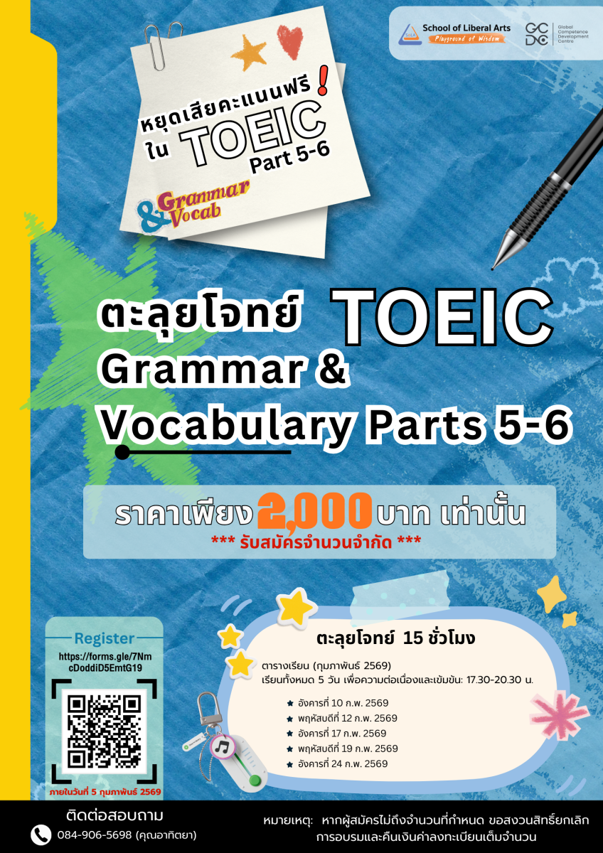 🚀อัปคะแนน TOEIC ให้พุ่งใน 15 ชม! กับคอร์ส “ตะลุยโจทย์ Grammar & Vocabulary Parts 5-6”