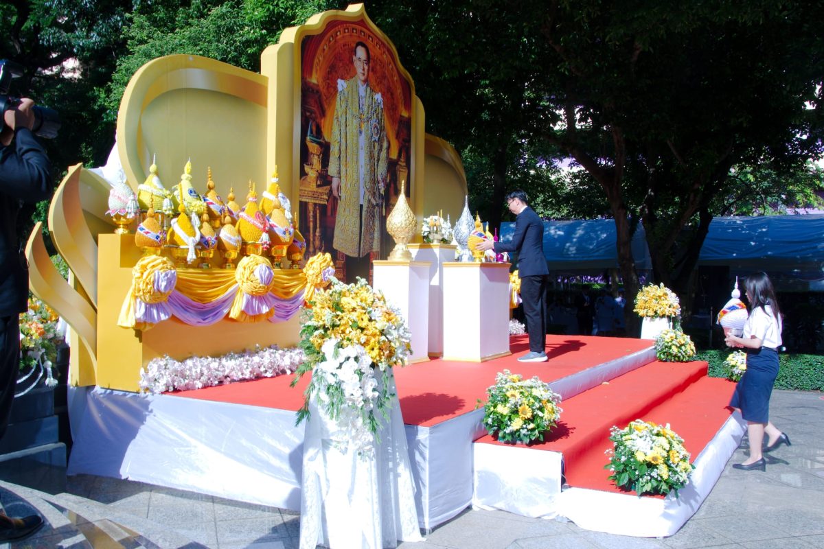 เมื่อวันที่ 19 ตุลาคม 2568 คณะวิทยาศาสตร์ มหาวิทยาลัยเทคโนโลยีพระจอมเกล้าธนบุรี (มจธ.) นำโดย ผู้ช่วยศาสตราจารย์ ดร.นครินทร์ พัฒนบุญมี รองคณบดีฝ่ายพัฒนานักศึกษาและผู้เรียนรู้ พร้อมด้วย ดร.ณัฐพงษ์ นุติพาณิชย์ คุณวิราทิพย์ ดามาพงษ์ คุณอภิชาต กุลไพบุตร และนักศึกษาคณะวิทยาศาสตร์ เป็นผู้แทนคณะวิทยาศาสตร์เข้าร่วมพิธีวางพุ่มดอกไม้ถวายราชสักการะ พระบาทสมเด็จพระบรมชนกาธิเบศร มหาภูมิพลอดุลยเดชมหาราช บรมนาถบพิตร เพื่อเทิดพระเกียรติและน้อมรำลึกในพระมหากรุณาธิคุณ รวมถึงพระอัจฉริยภาพด้านวิทยาศาสตร์และเทคโนโลยี อันเป็นที่มาของการยกย่องพระองค์ท่านให้ทรงเป็น “พระบิดาแห่งเทคโนโลยีของไทย”